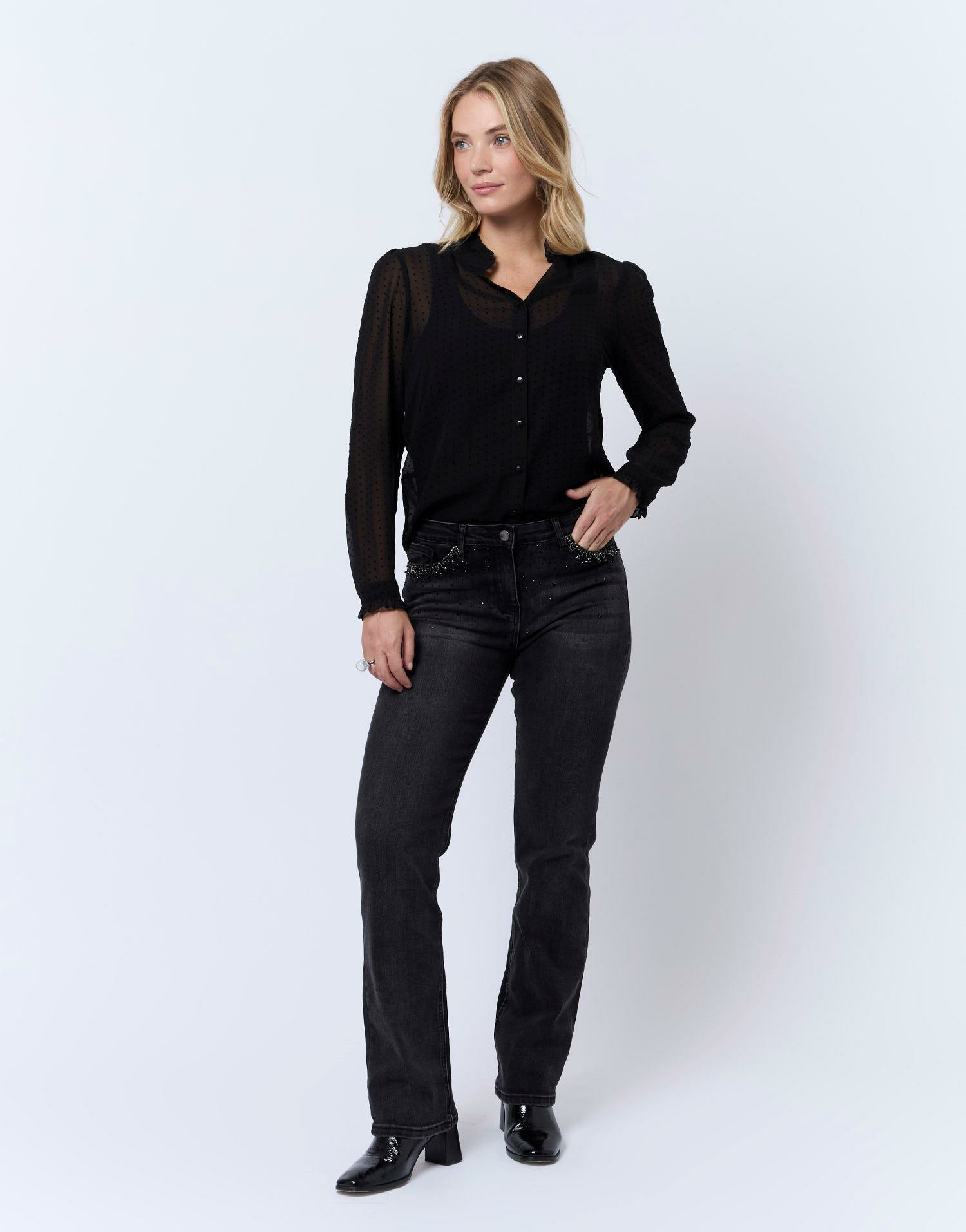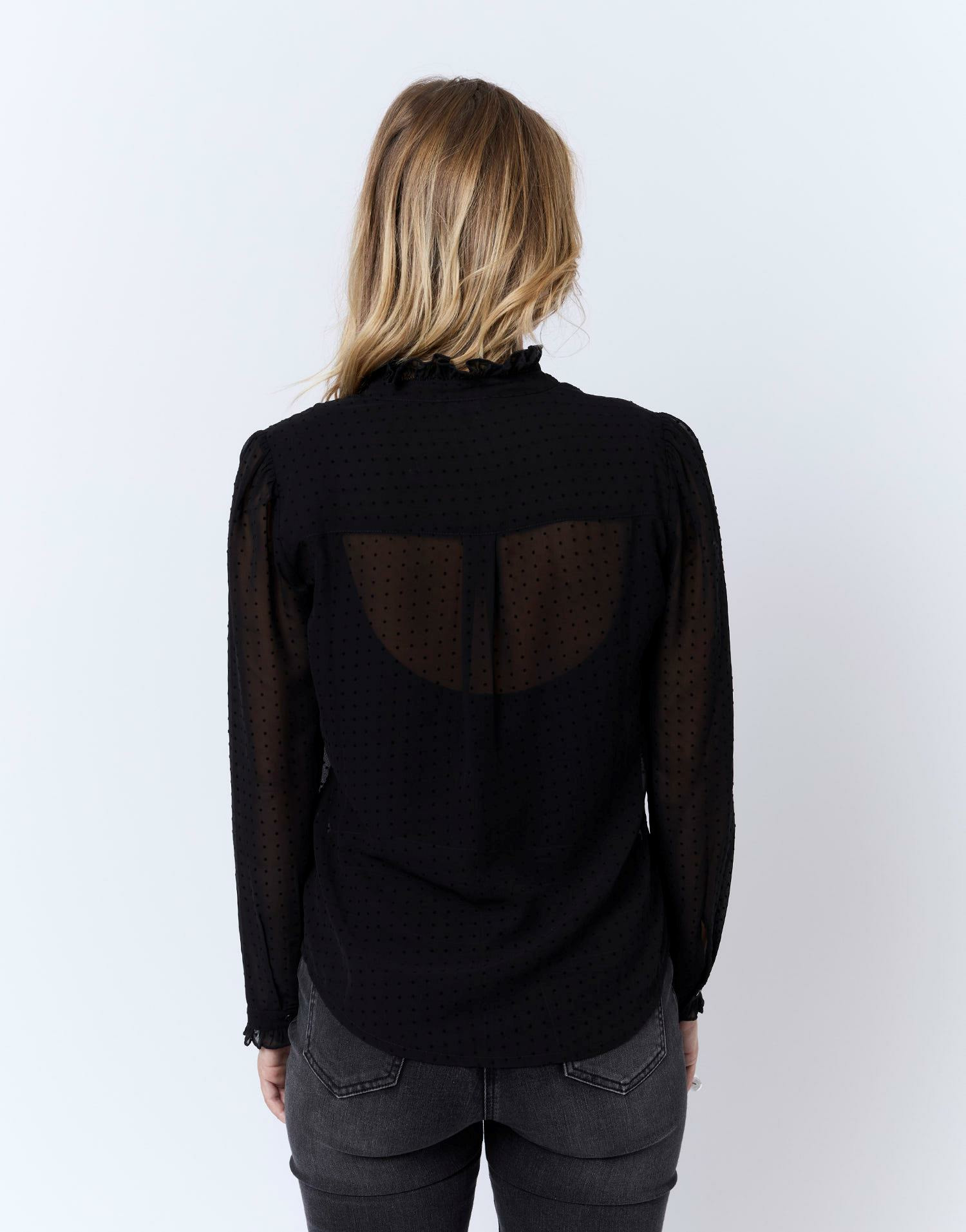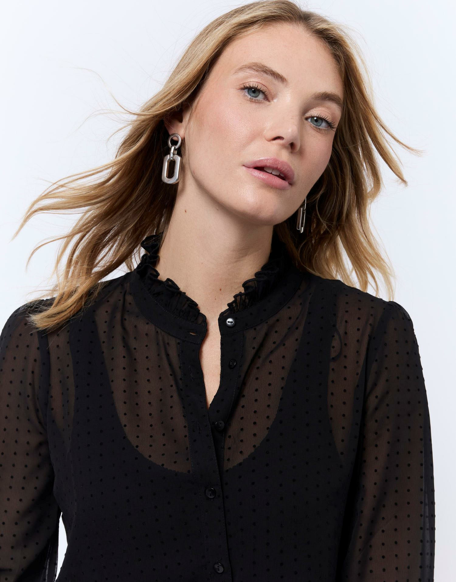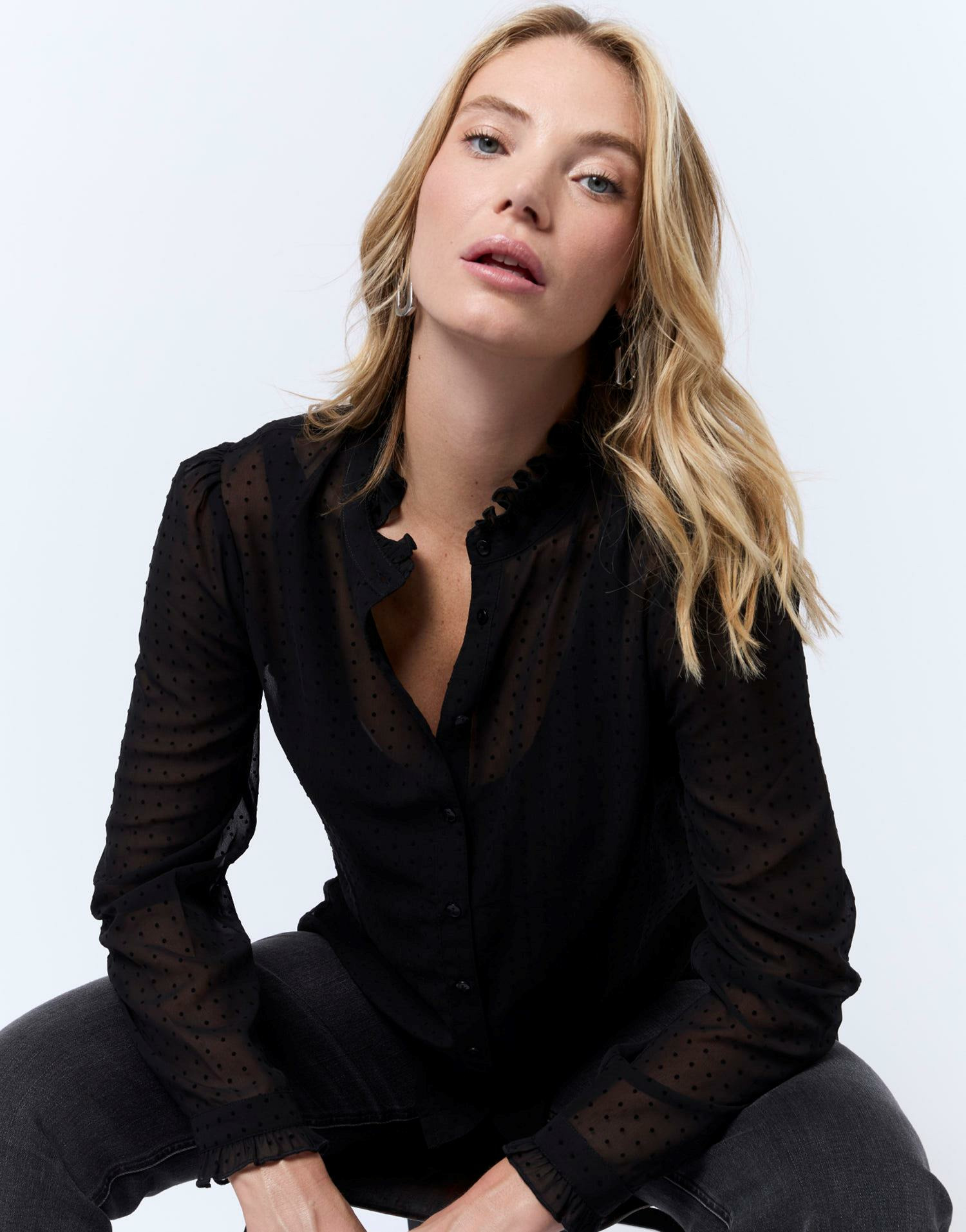 Le chemisier noir qui allie élégance et délicatesse pour sublimer votre silhouette. Une pièce incontournable pour une allure féminine et raffinée au quotidien.