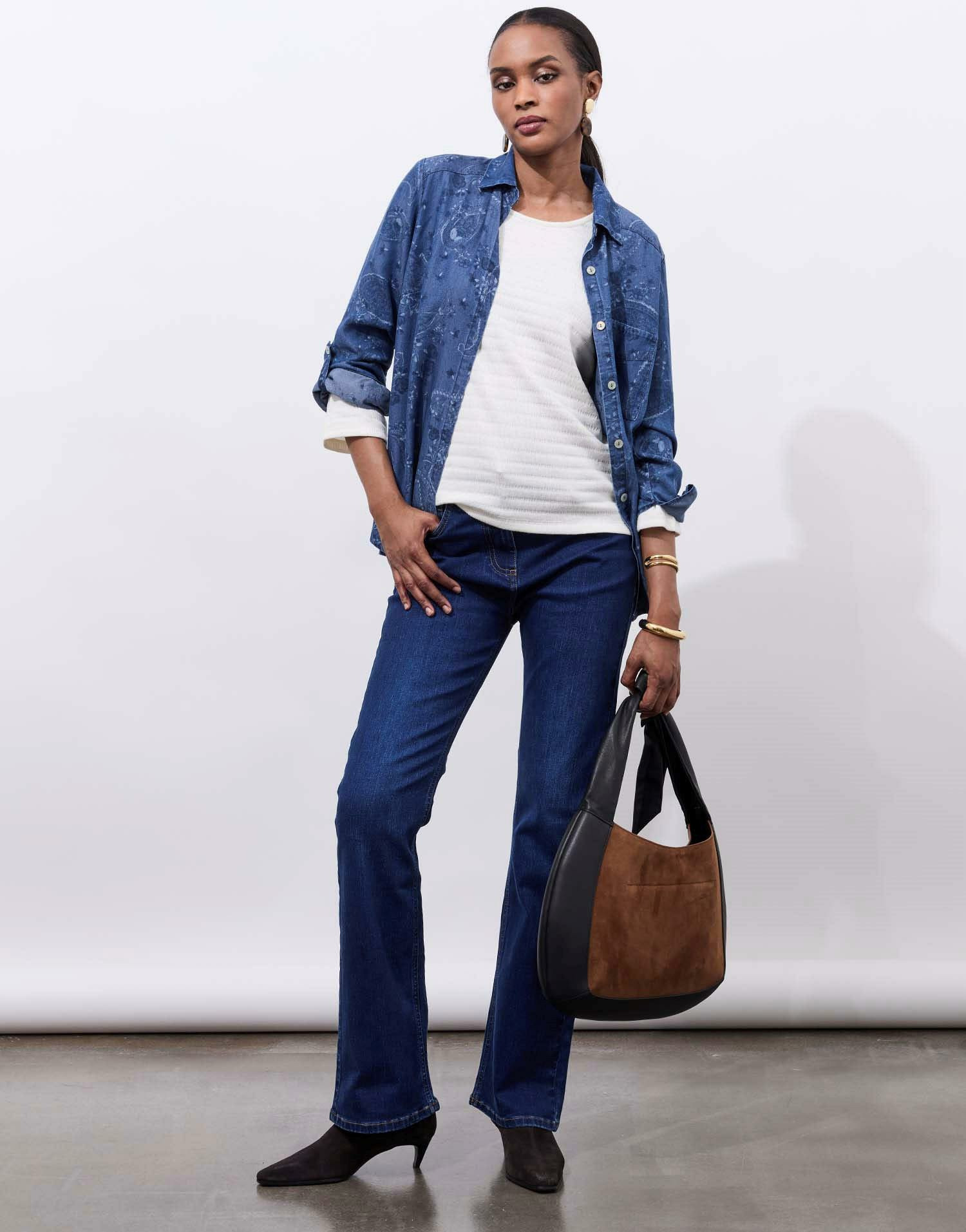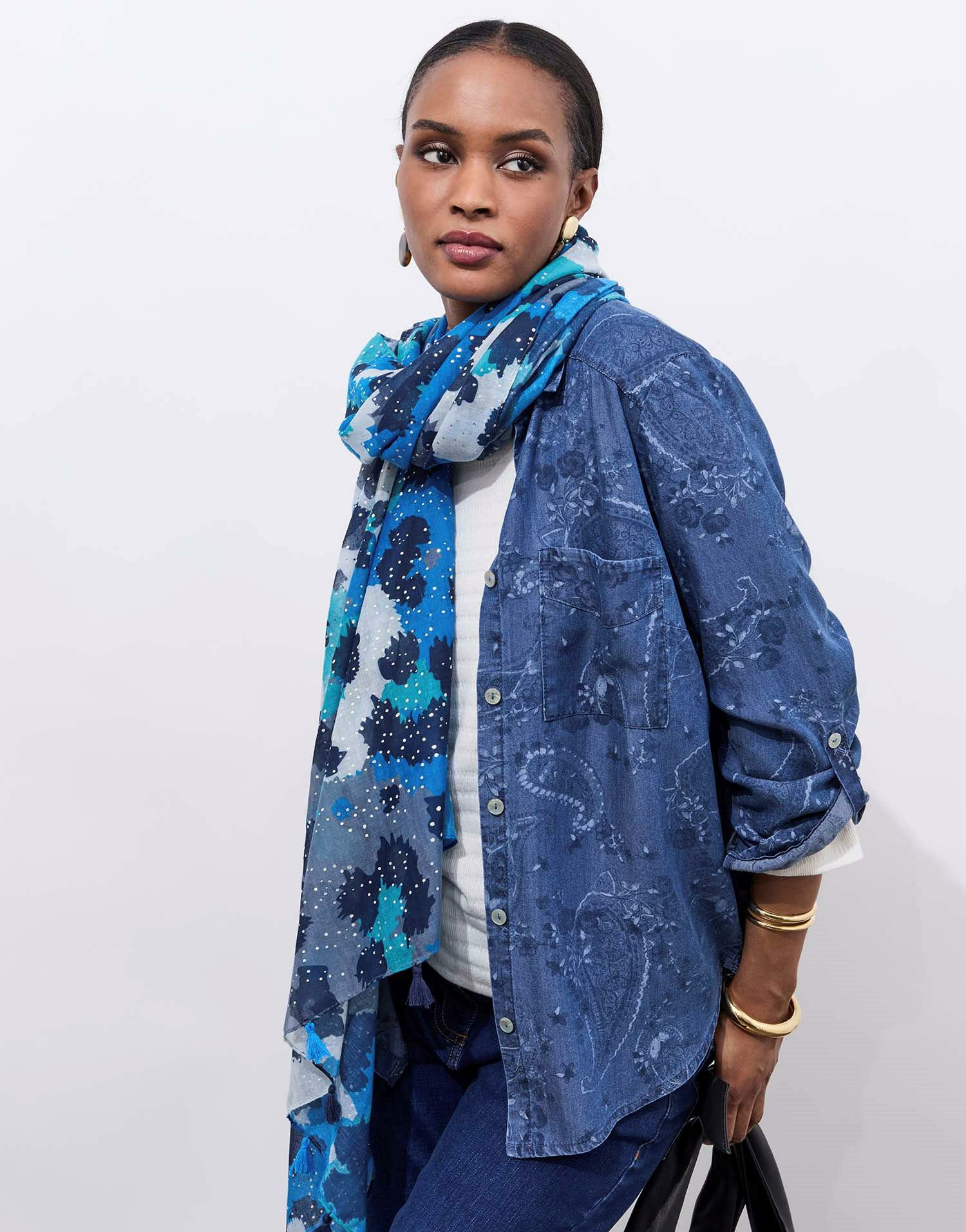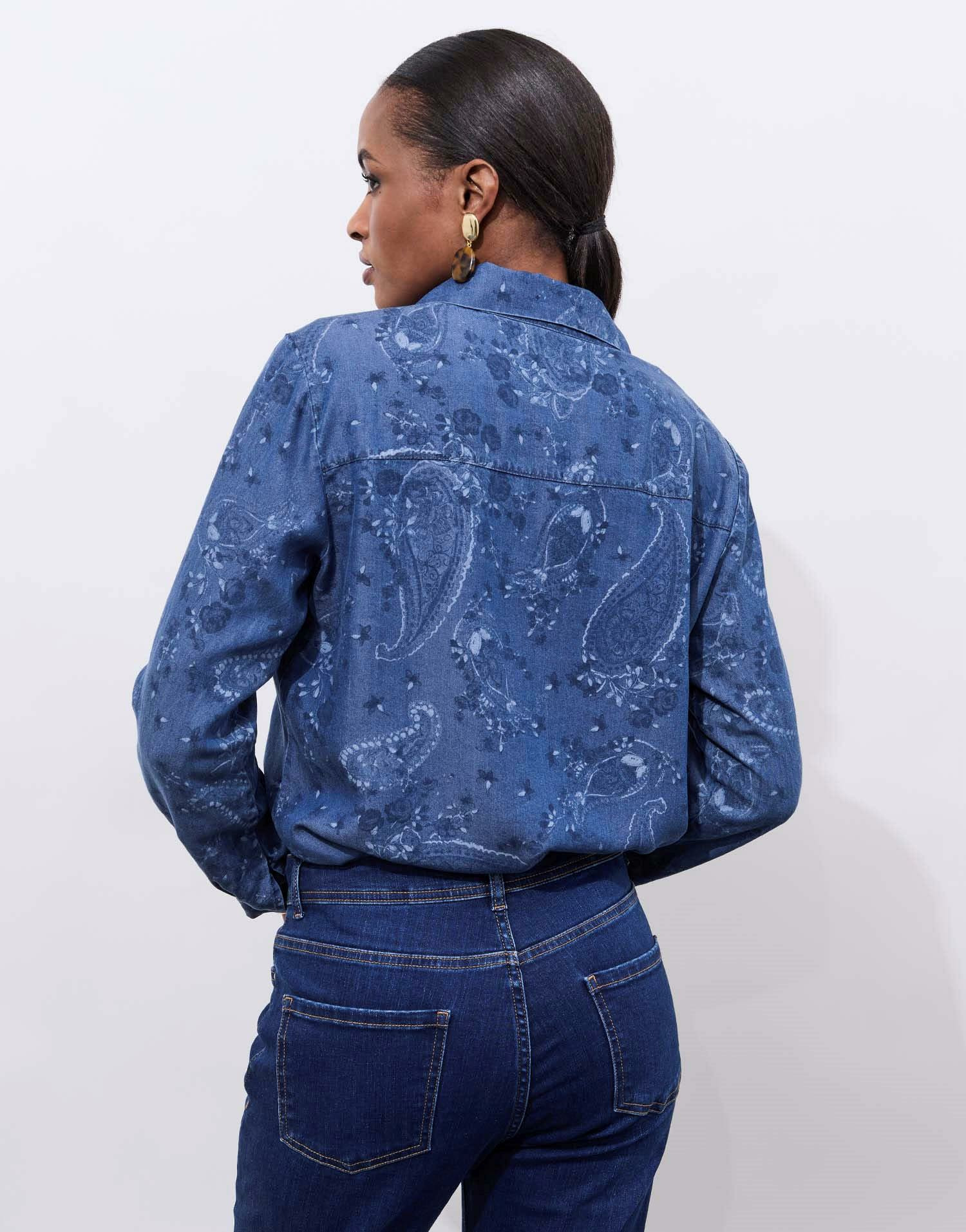 Confectionné dans un denim léger orné d’un imprimé floral discret, ce chemisier allie douceur et style. Sa coupe fluide épouse délicatement les formes féminines, offrant un tombé naturel et confortable. Portez-le rentré dans un jean pour un look soigné ou ouvert sur un top pour une allure plus décontractée, il s’adapte à toutes vos envies du jour.