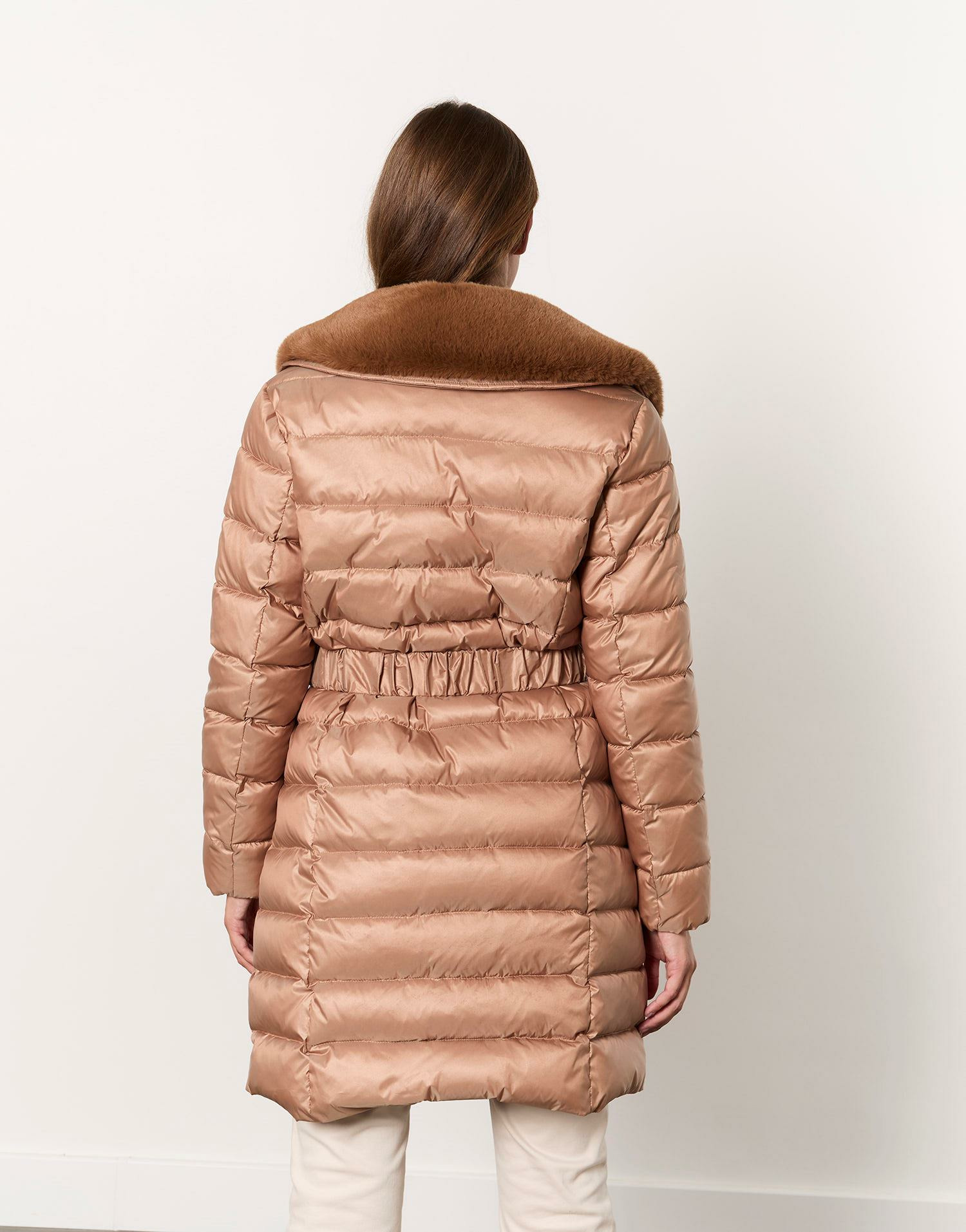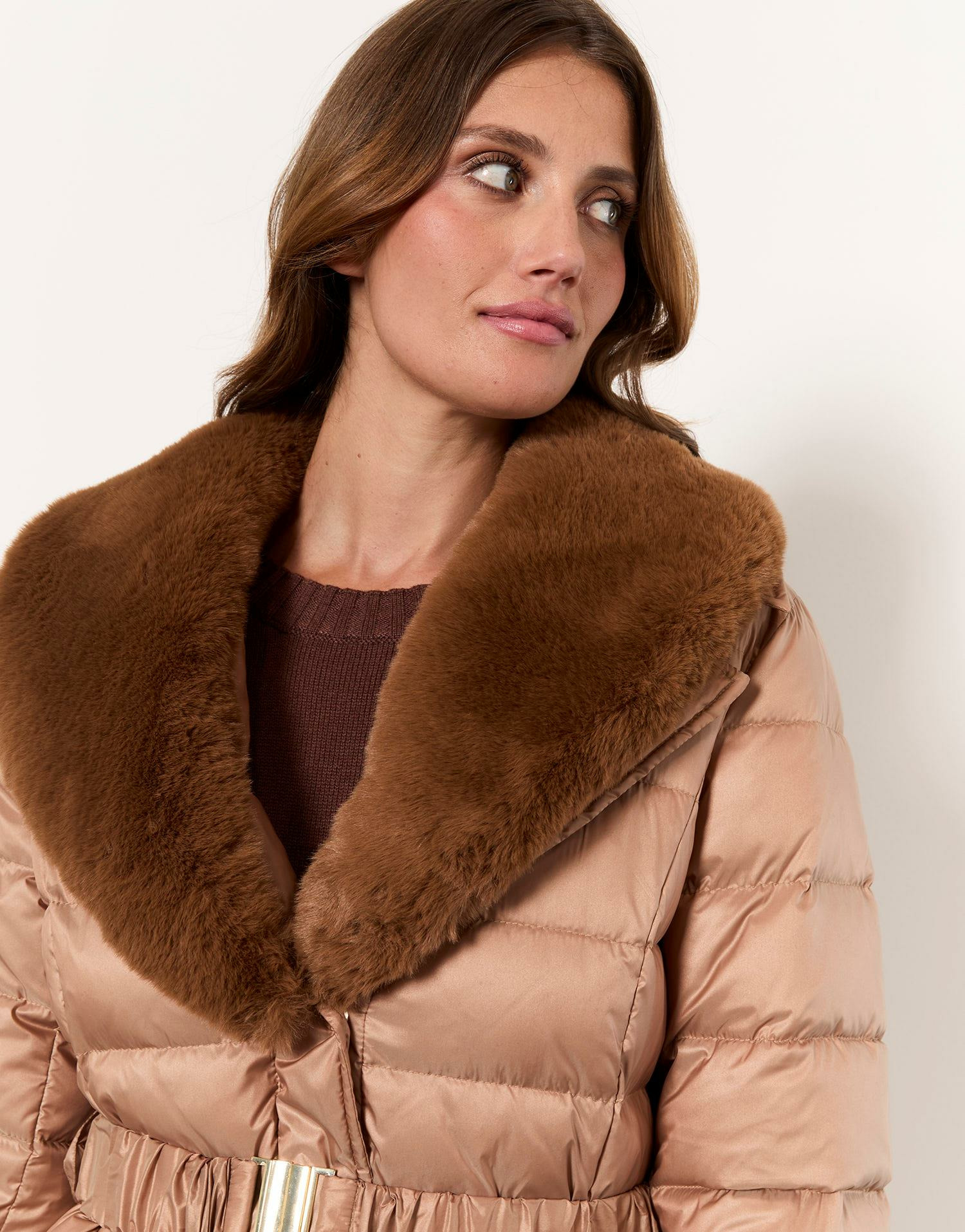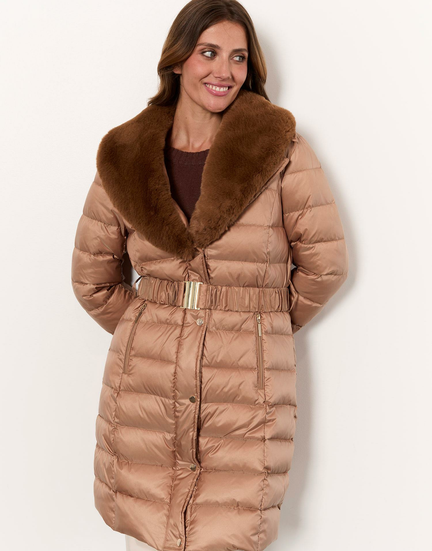 Fabriquée dans des matériaux de qualité, cette doudoune camel dispose d’un col en fourrure unie amovible et d’une ceinture amovible pour varier les styles. Elle est équipée de deux poches zippées et se décline en plusieurs tailles pour s’adapter à toutes les morphologies.