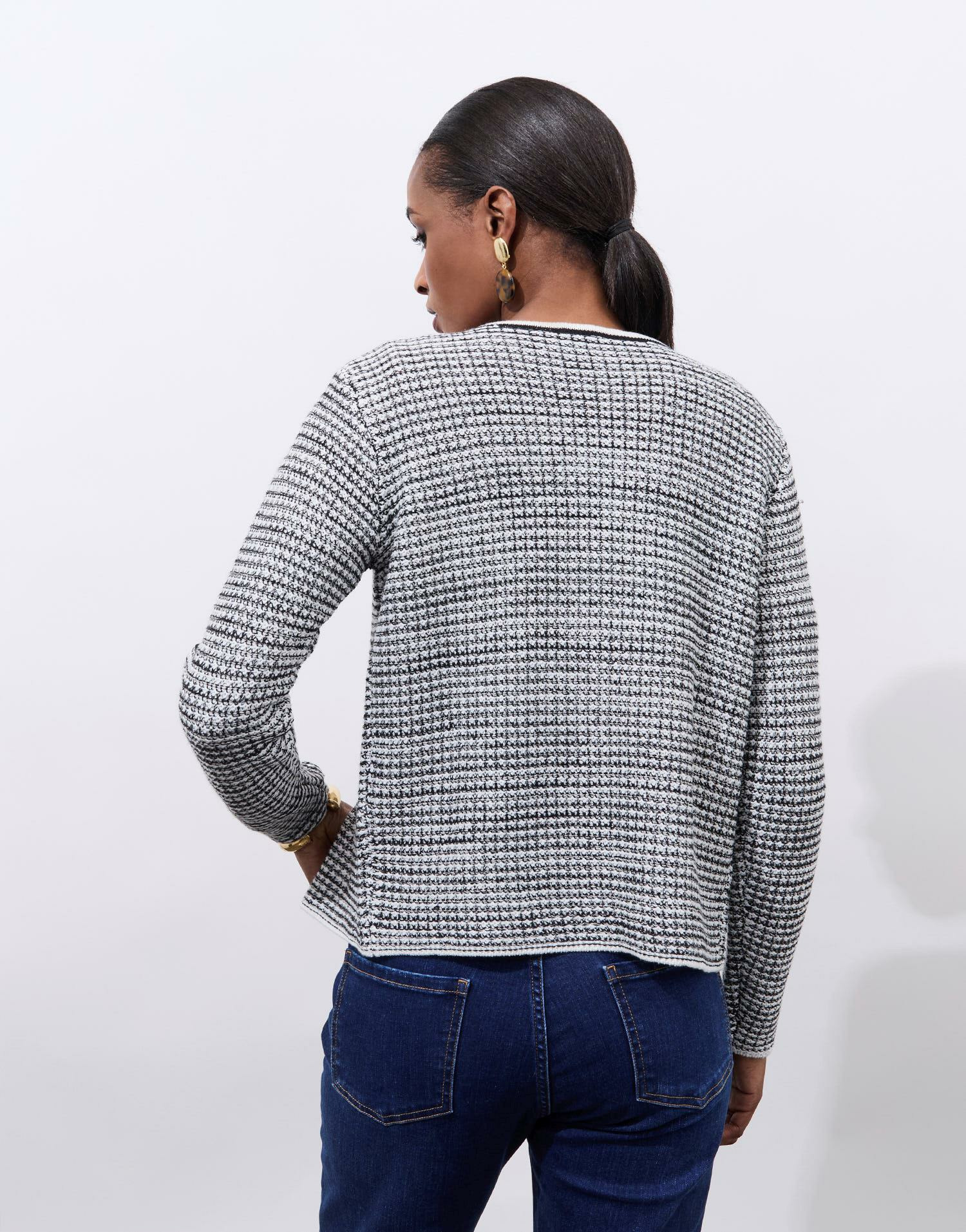 Conçu pour allier chic et confort, ce gilet joue sur les textures et les contrastes pour un rendu moderne et raffiné. Son boutonnage soigné et ses manches longues renforcent une allure couture, parfaite pour un look travaillé au quotidien sans effort. Facile à porter, il s’adapte à toutes vos envies, du bureau à vos sorties.