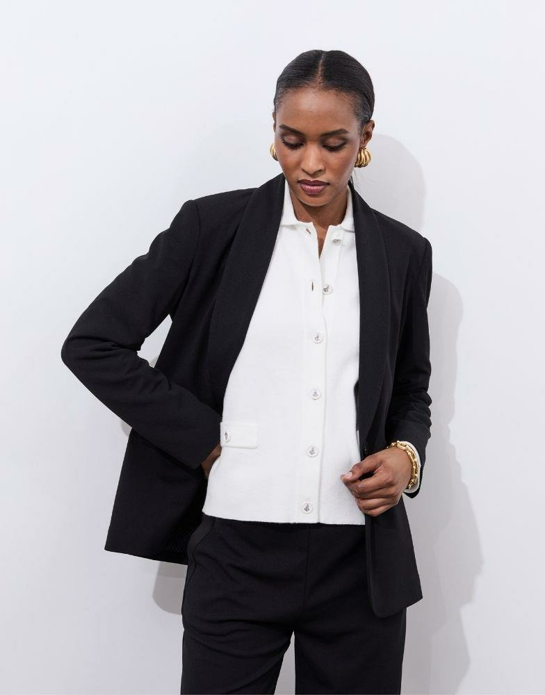 Confectionné dans une matière douce et légère, ce gilet à manches longues s’adapte à toutes les occasions, du bureau aux sorties entre amis. Sa coupe ajustée valorise la silhouette sans contraindre, tandis que le détail des boutons apporte une touche d’originalité subtile et sophistiquée. Facile à associer, il devient rapidement un incontournable de votre garde-robe.