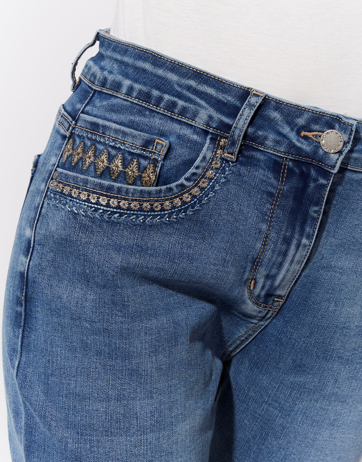 Peut-on laver ce jean en machine ? Oui, lavage en machine à 30 degrés recommandé pour préserver les broderies.