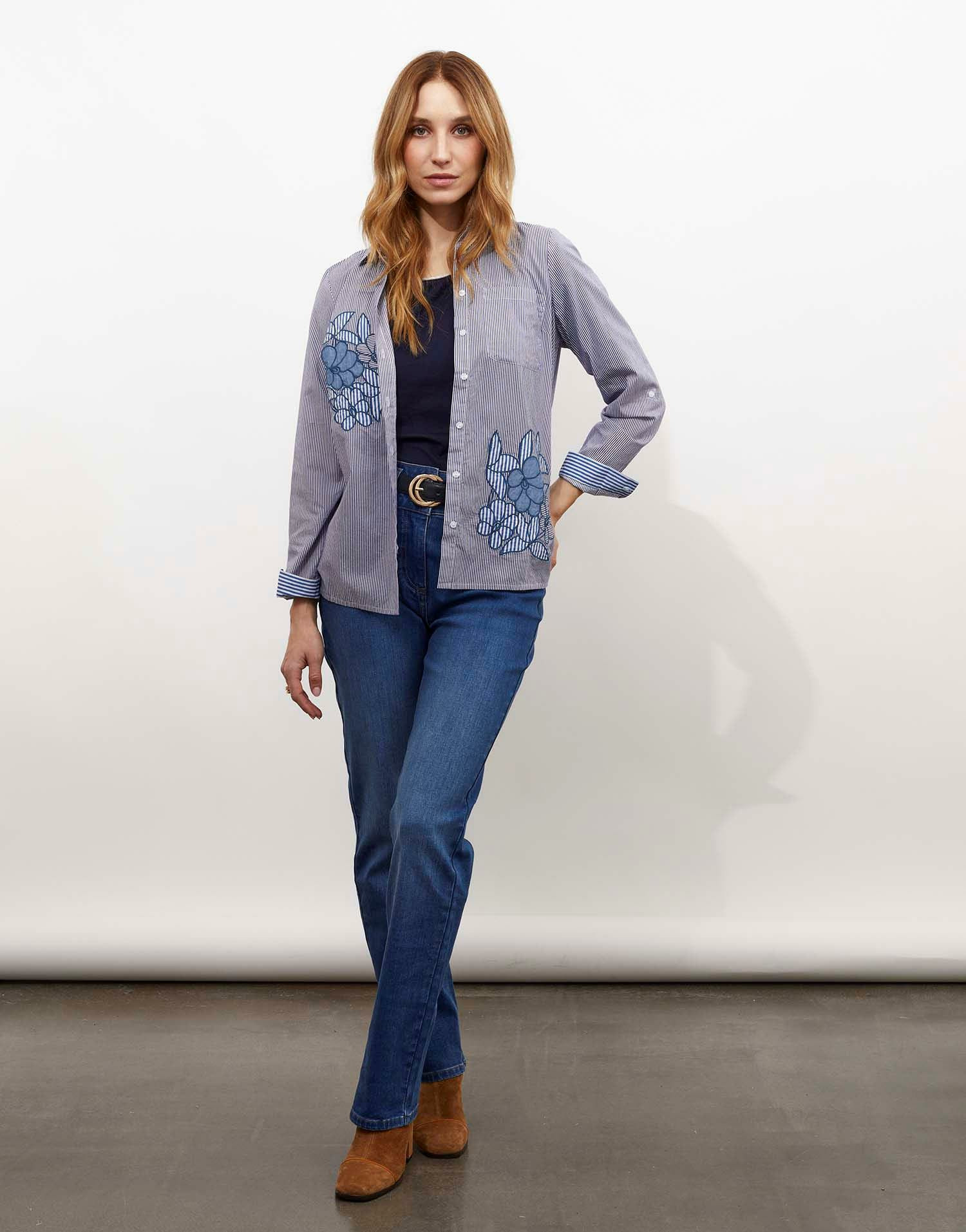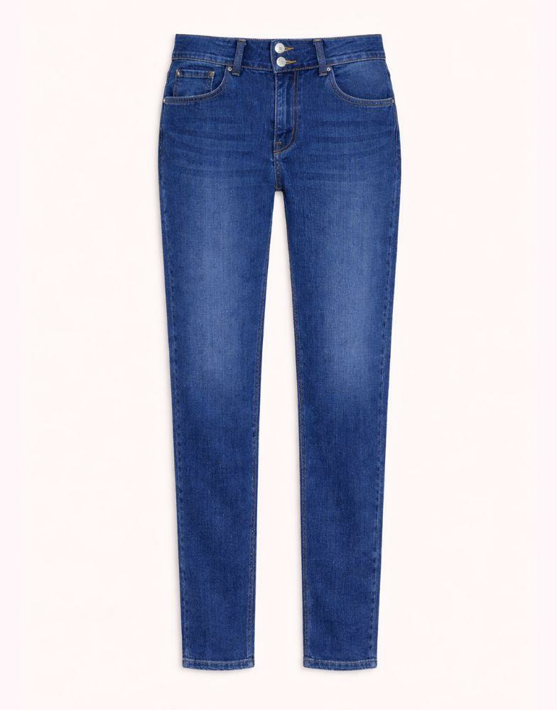 Un jean long droit bleu qui allie élégance et confort au quotidien. Une pièce essentielle pour structurer votre silhouette avec naturel.