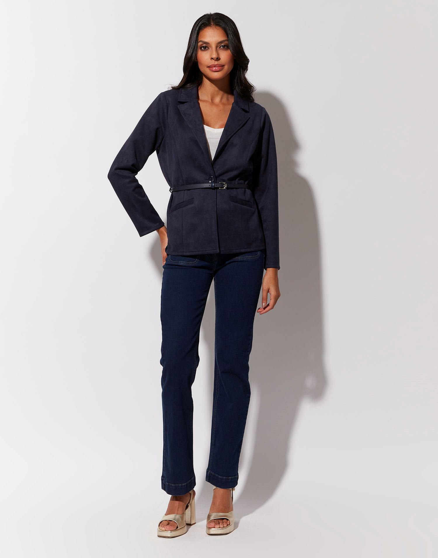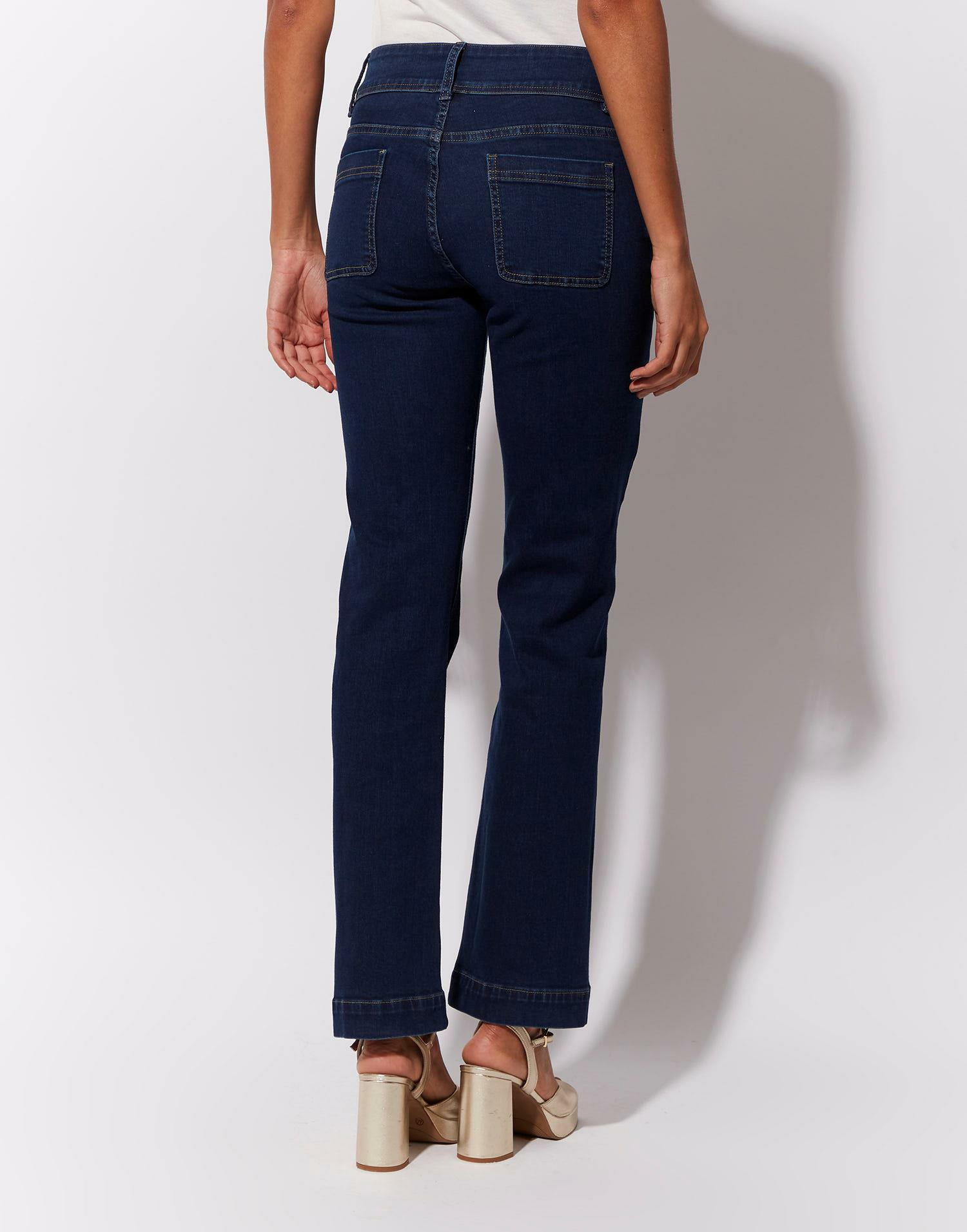 Comment entretenir ce jean ? Il est recommandé de le laver à froid pour préserver la couleur marine et la qualité des détails dorés.