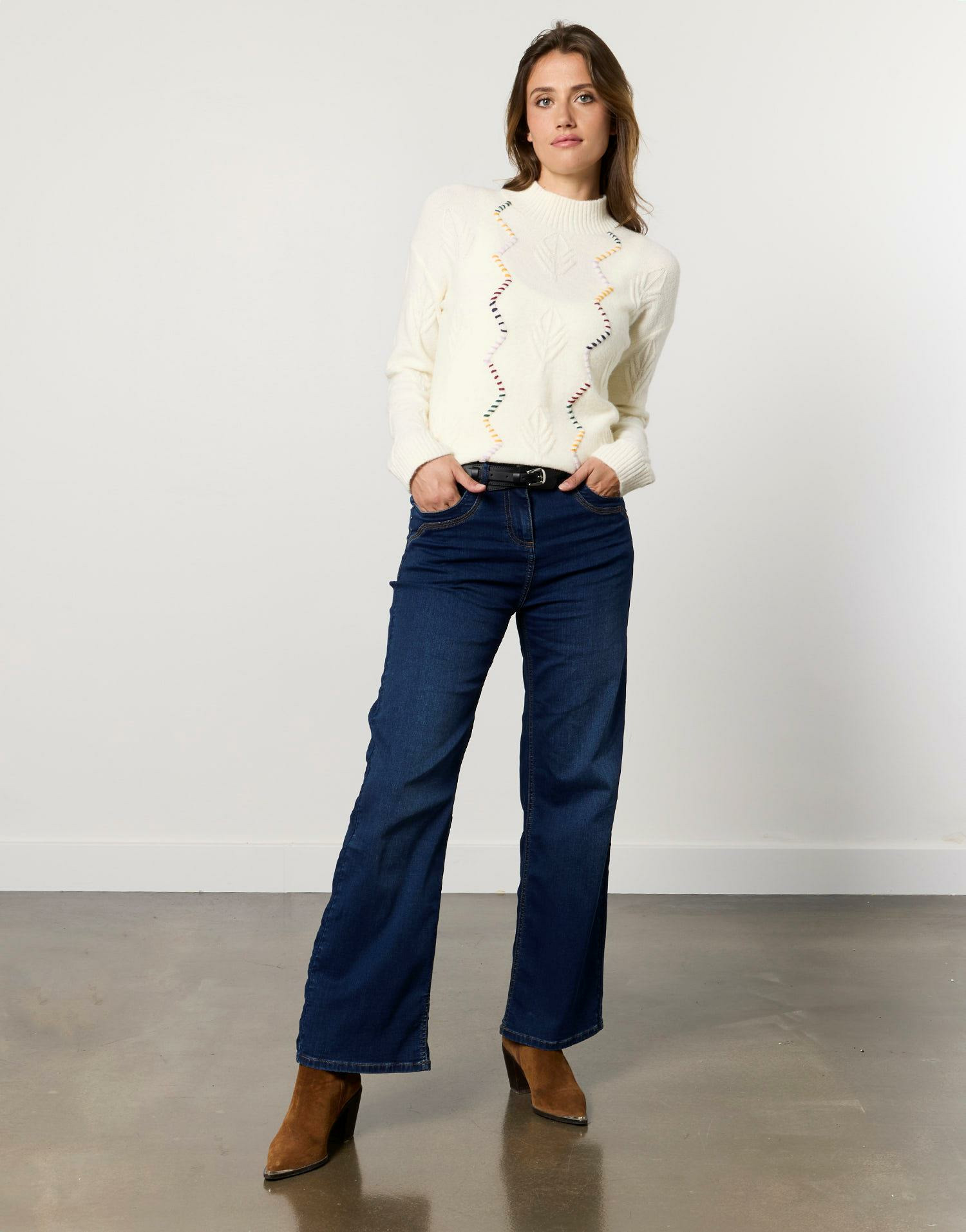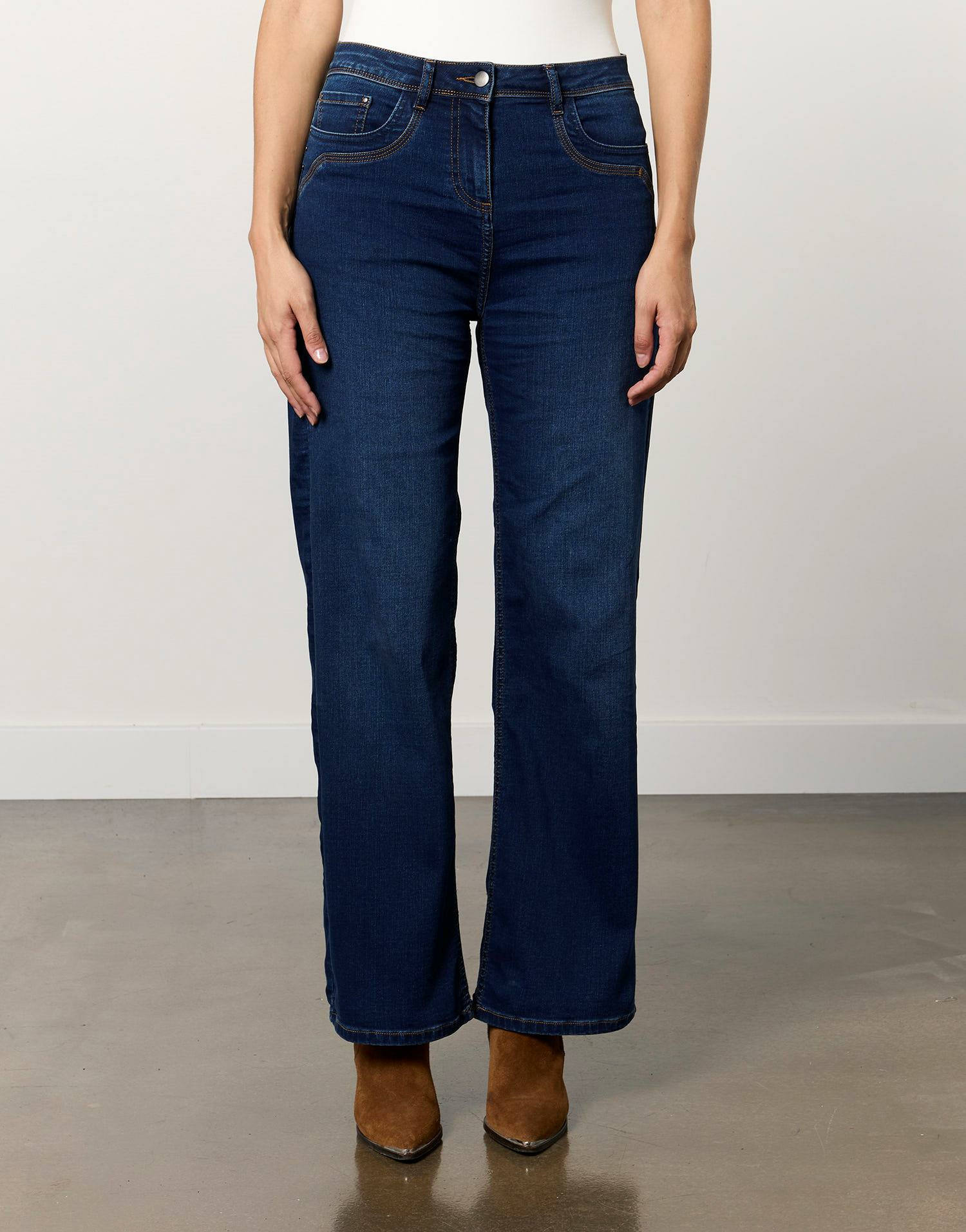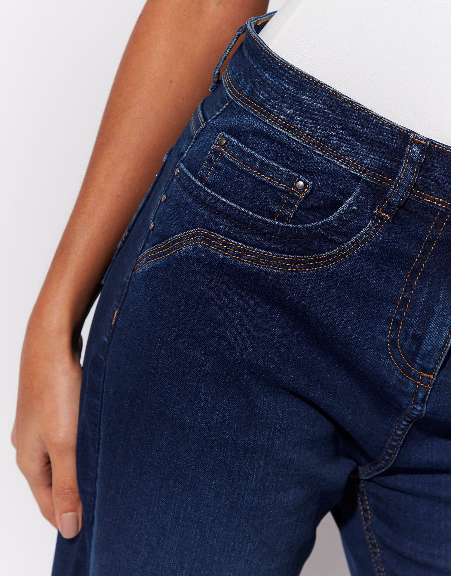 Longueur d’entrejambe : 80 cm. Largeur au genou : 25,5 cm. Largeur en bas de jambe : 26,5 cm. Armelle mesure 1m79 et porte une taille 38. Ce jean denim foncé peut tailler grand, pensez à choisir la taille en dessous si vous êtes entre deux tailles.