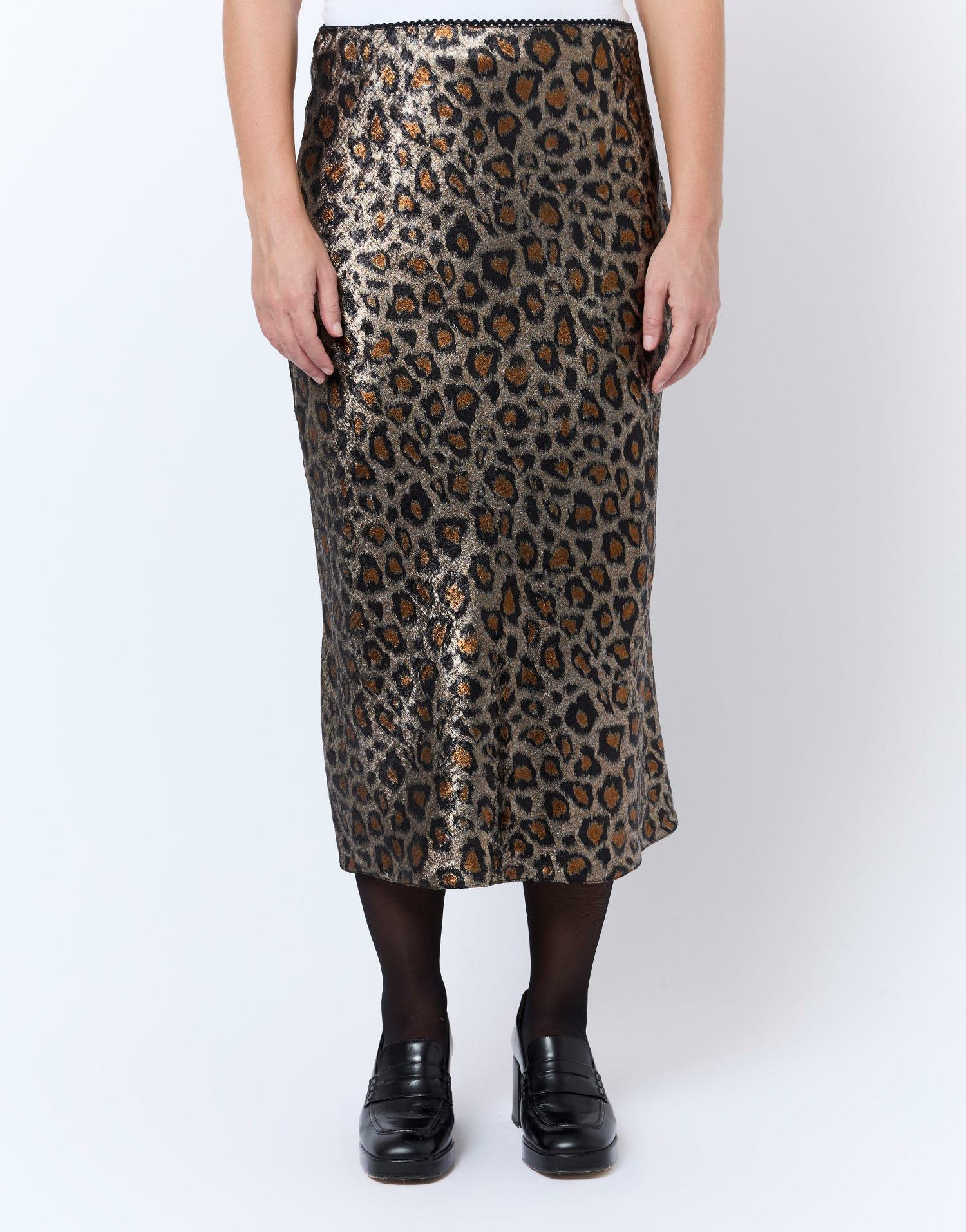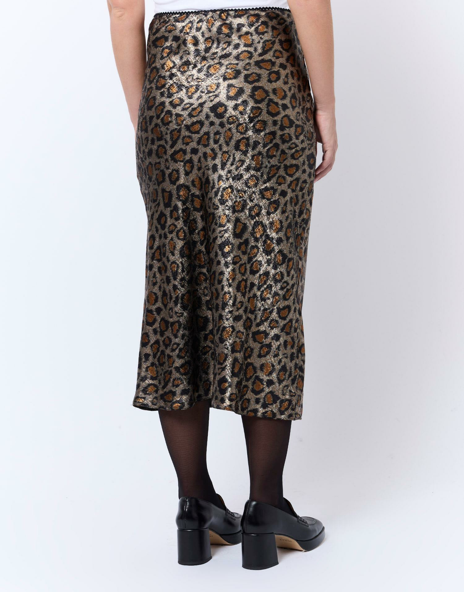 Affirmez votre style avec cette jupe courte satinée à imprimé léopard, une pièce audacieuse qui sublime chaque silhouette. Sa teinte marron chaleureuse et son motif animalier apportent une touche contemporaine et élégante à votre garde-robe.