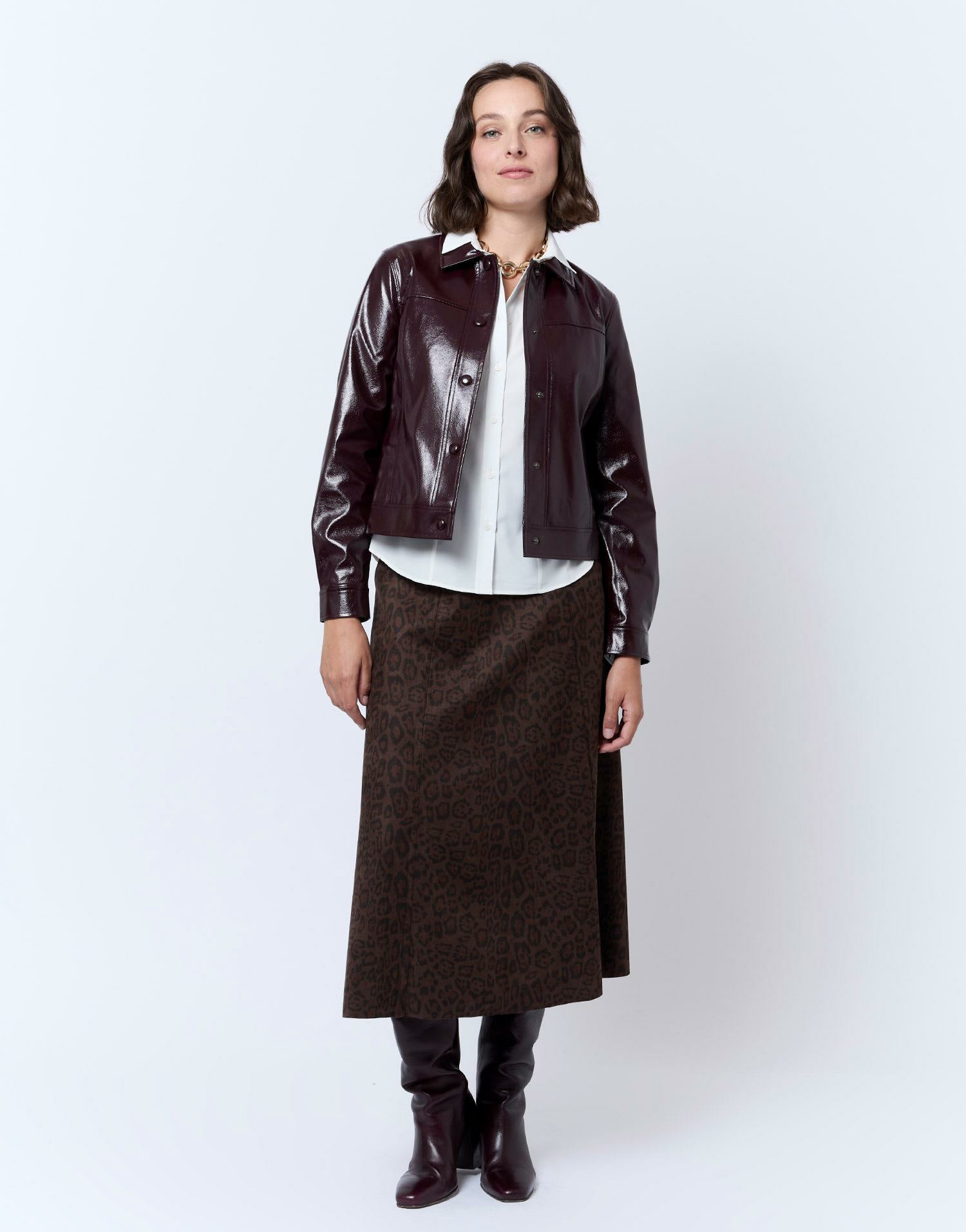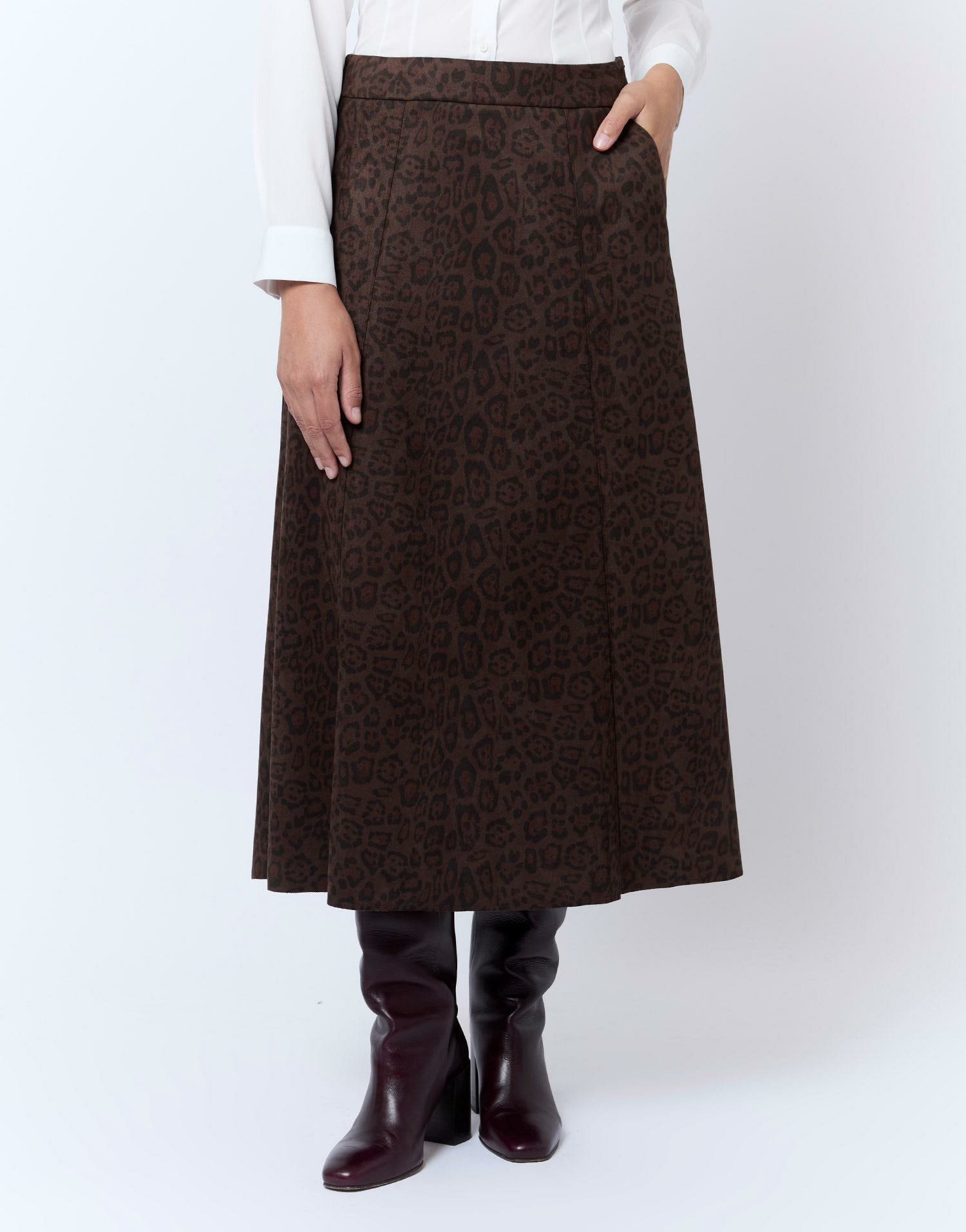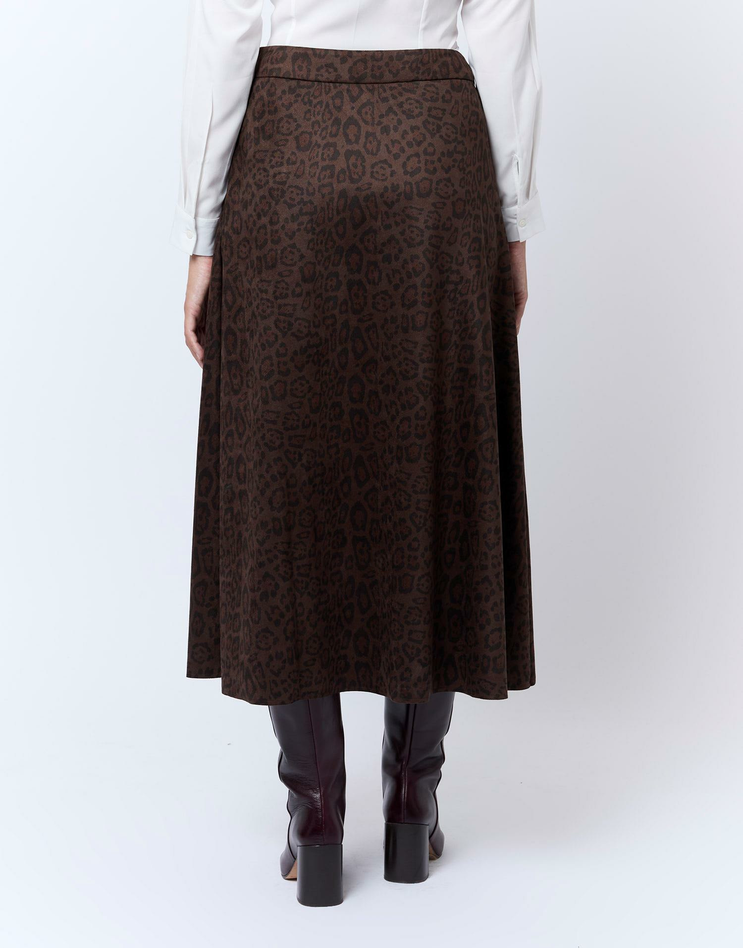 Affirmez votre style avec cette jupe longue imprimé léopard, un incontournable pour dynamiser votre garde-robe. Son coloris marron et sa matière suédine apportent une touche sophistiquée à chaque tenue.