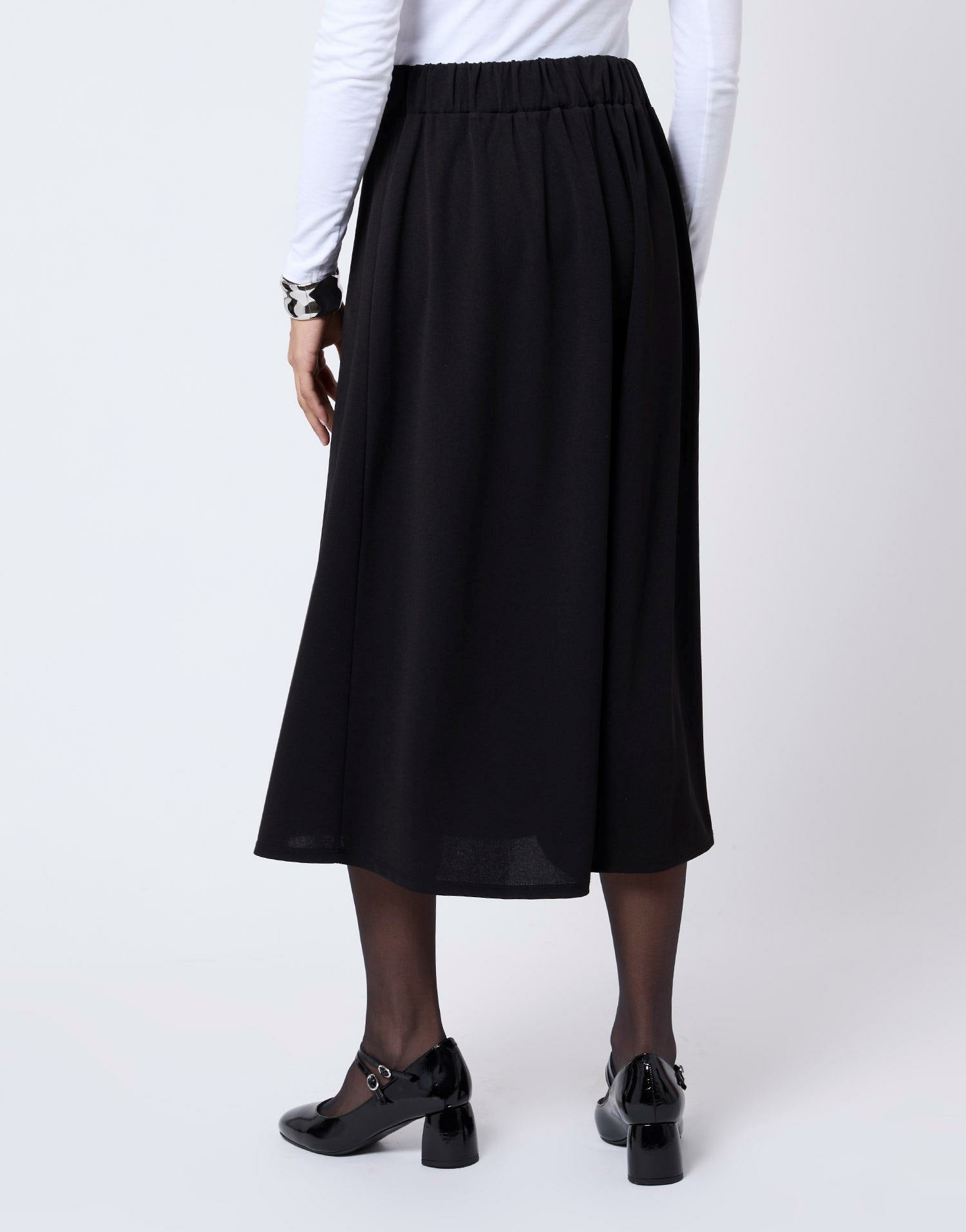 Sublimez votre allure avec cette jupe midi évasée noire, un essentiel qui allie modernité et élégance. Les œillets décoratifs apportent une touche contemporaine à une silhouette féminine et fluide.