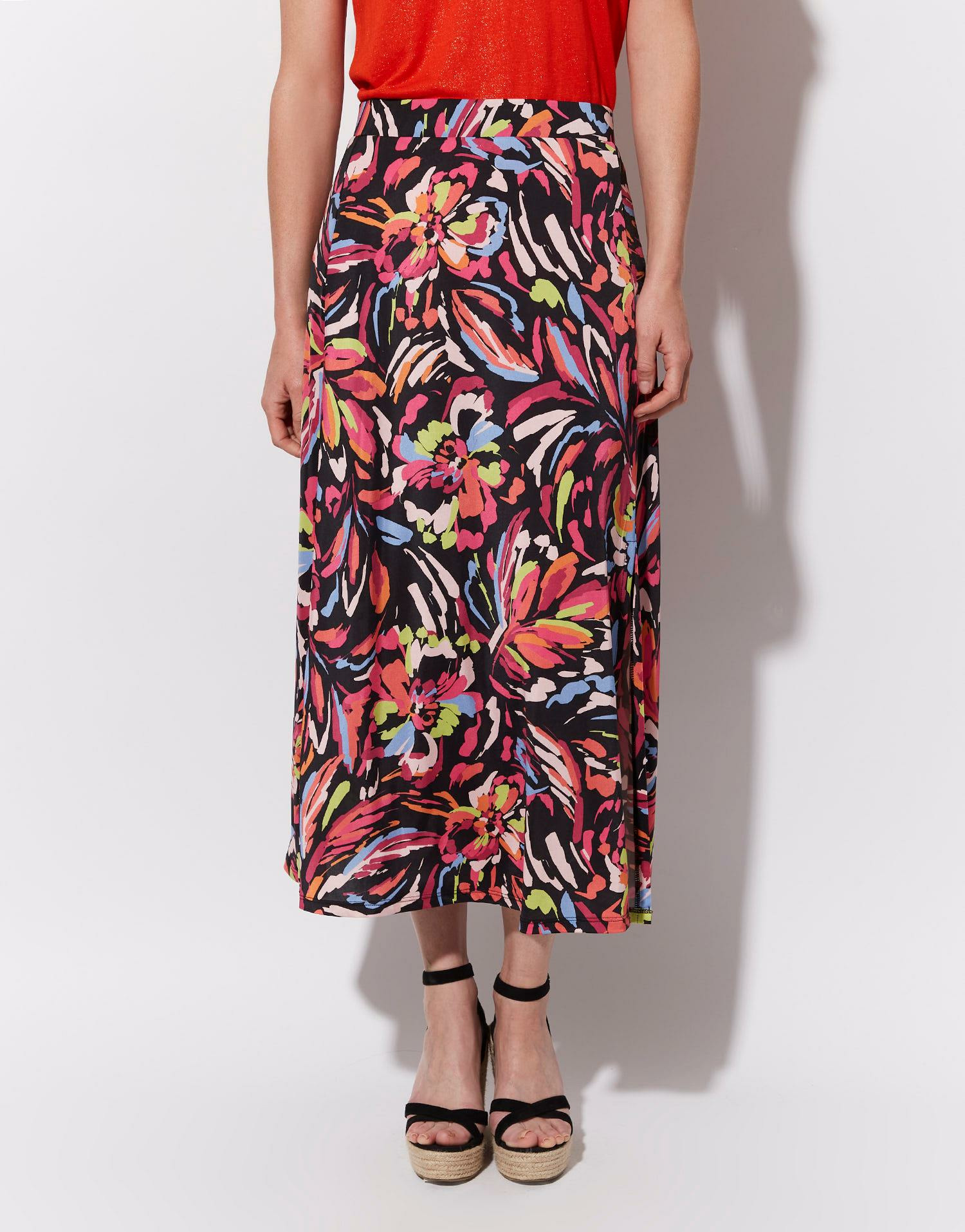 Affirmez votre élégance avec la jupe midi imprimée NOIR de RIU Paris, un indispensable pour sublimer vos looks estivaux. Sa coupe fluide et sa fente subtile révèlent vos jambes avec finesse, pour un style à la fois audacieux et raffiné.