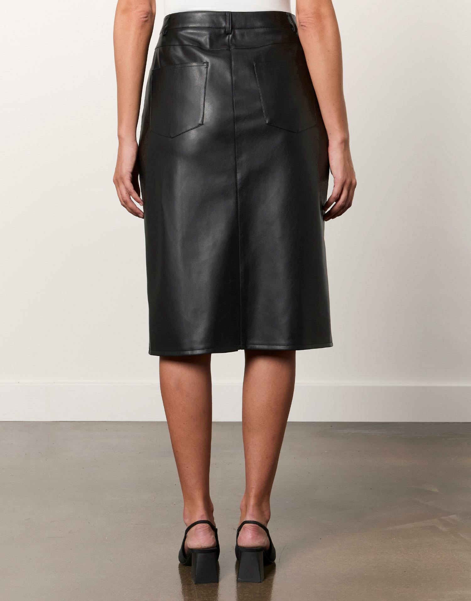 Cette jupe crayon noire dévoile une silhouette féminine grâce à sa coupe ajustée et sa fente avant subtilement placée. Sa matière en skaï apporte une touche contemporaine et facile à porter, idéale pour passer du bureau à une sortie en ville. Facile à associer, elle s’adapte aussi bien à un chemisier fluide qu’à un pull oversize pour un look décontracté chic.
