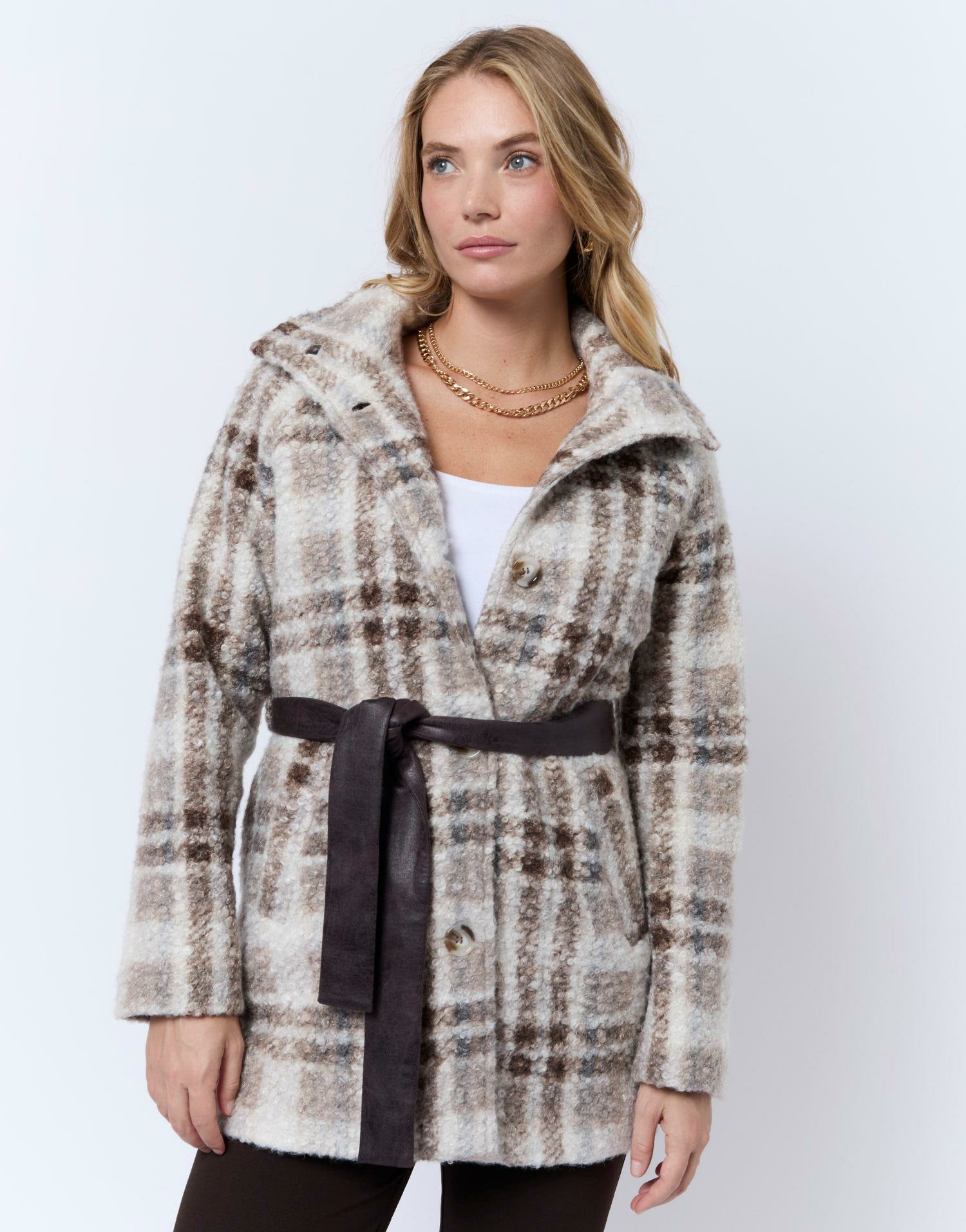 Adoptez l’élégance intemporelle avec ce manteau à carreaux beige, conçu pour sublimer chaque silhouette. Sa coupe féminine et ses détails soignés en font un incontournable de votre garde-robe hivernale.