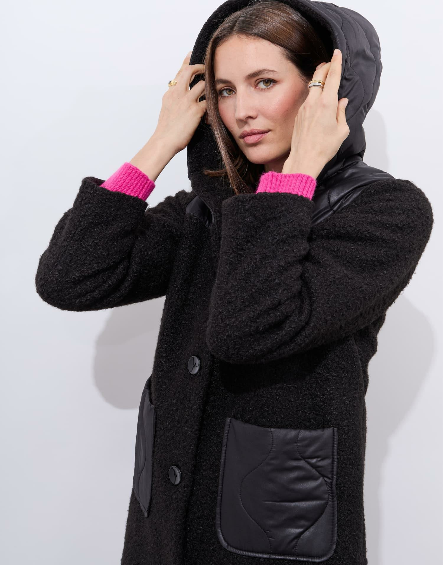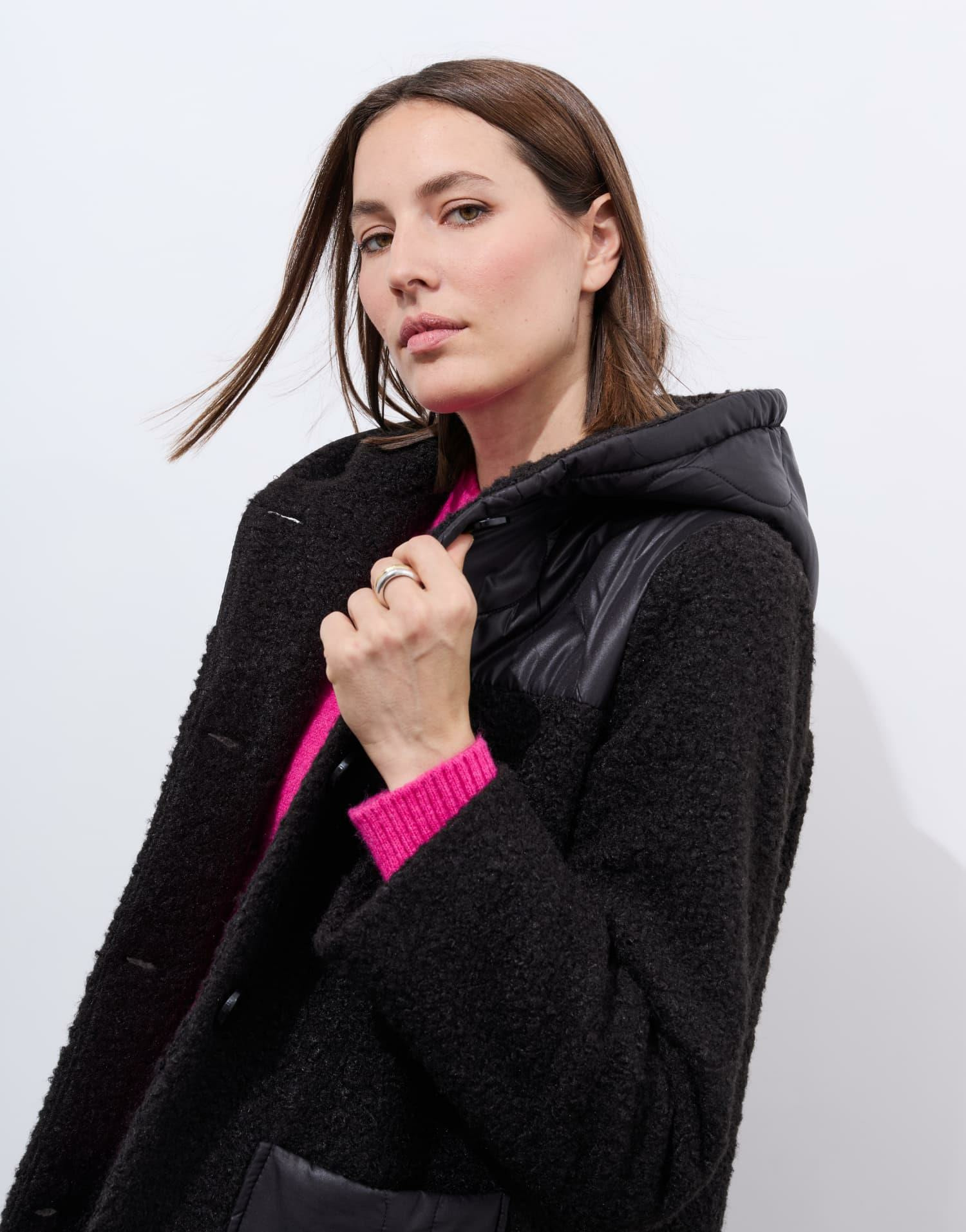 Ce manteau uni combine habilement la douceur de la bouclette et la légèreté du matelassé pour un rendu à la fois structuré et confortable. Son col à capuche apporte une touche urbaine et pratique, idéale pour vous protéger du vent et du froid sans sacrifier votre style. Sa coupe ajustée souligne la silhouette tout en offrant une liberté de mouvement appréciable.