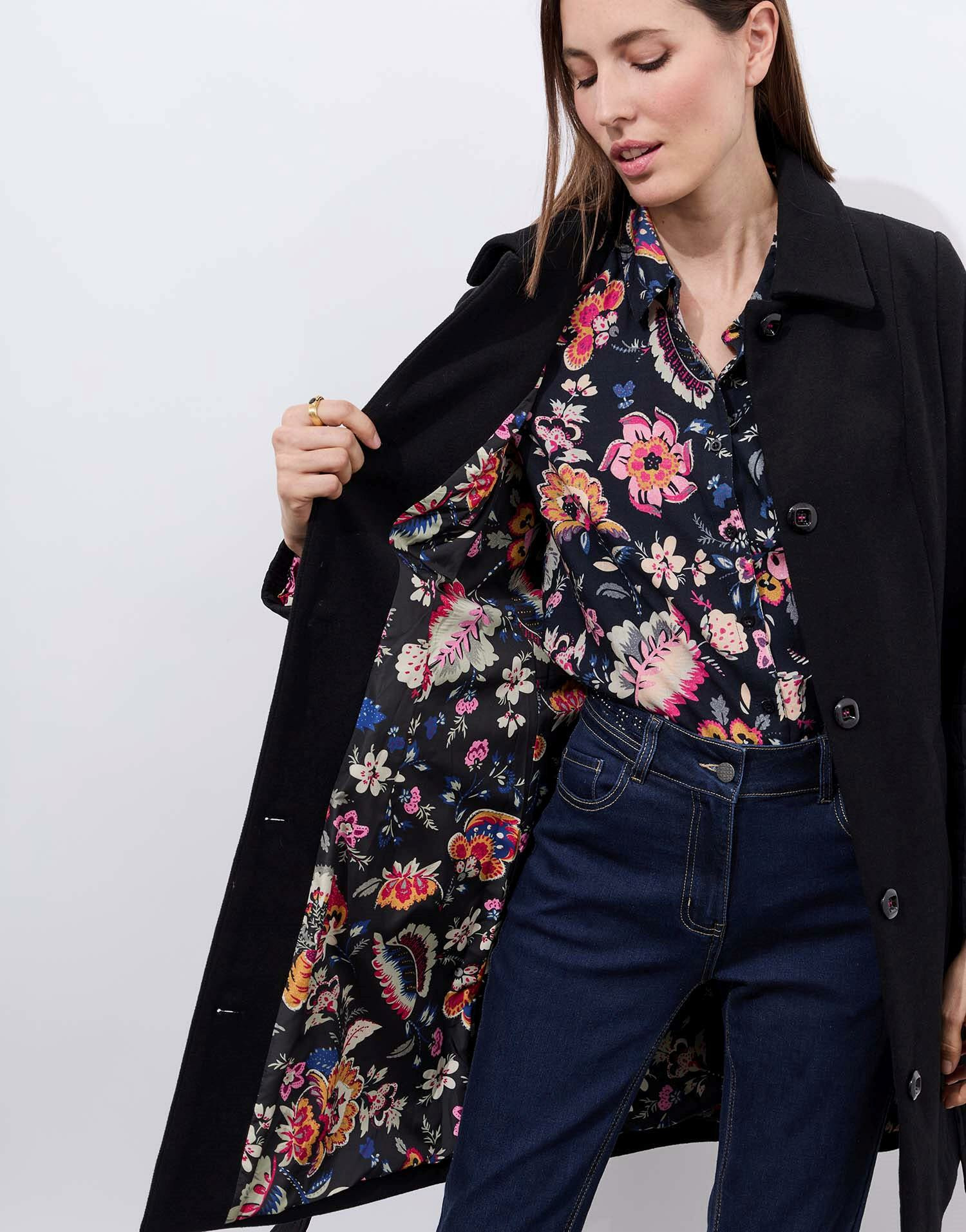 Conçu pour les femmes qui recherchent un style à la fois sobre et original, ce manteau uni se distingue par son jeu de textures bi-matière et sa doublure fleurie, qui apporte une touche de fraîcheur discrète. Le col simple et les manches longues assurent un confort optimal tout en renforçant son allure intemporelle.