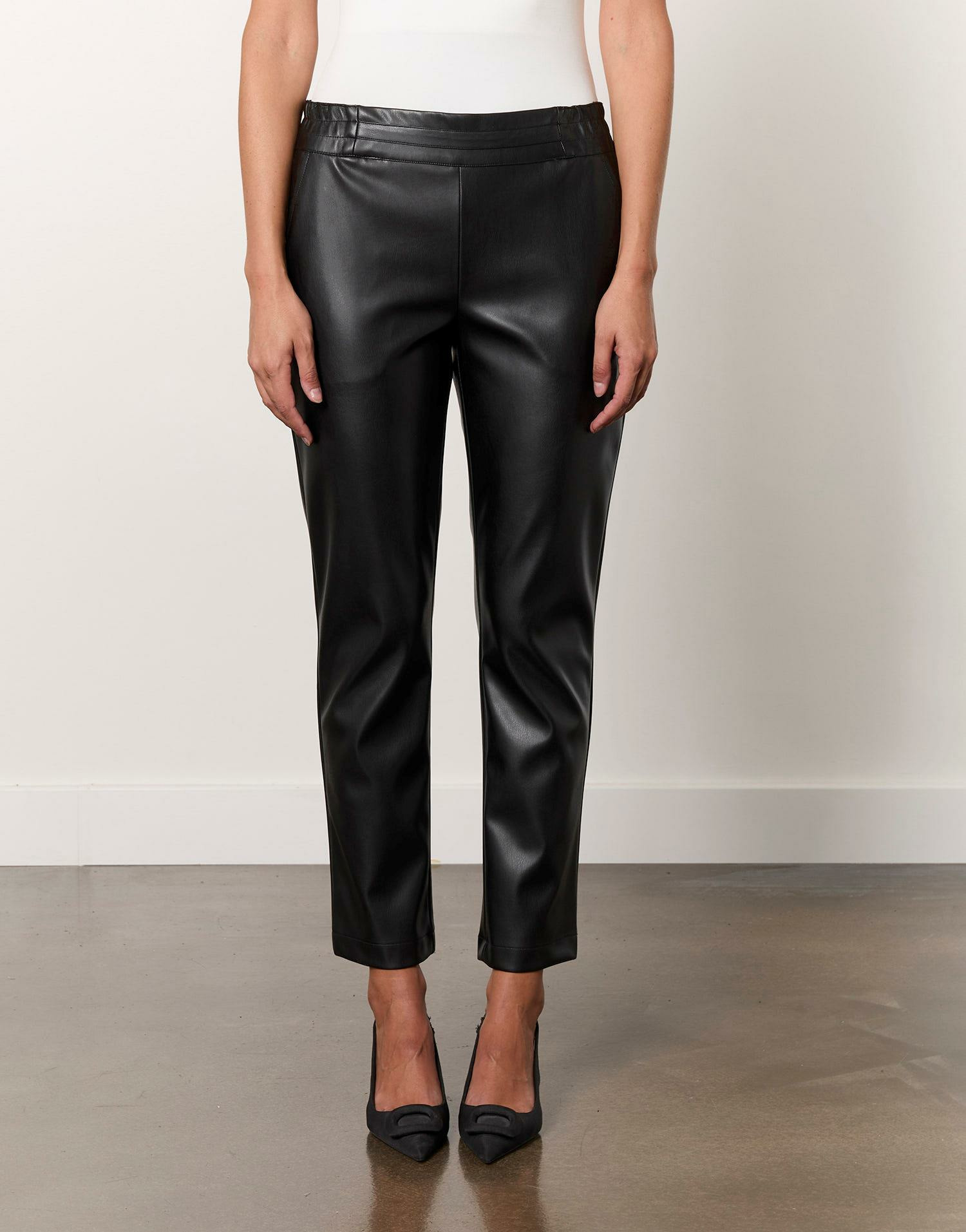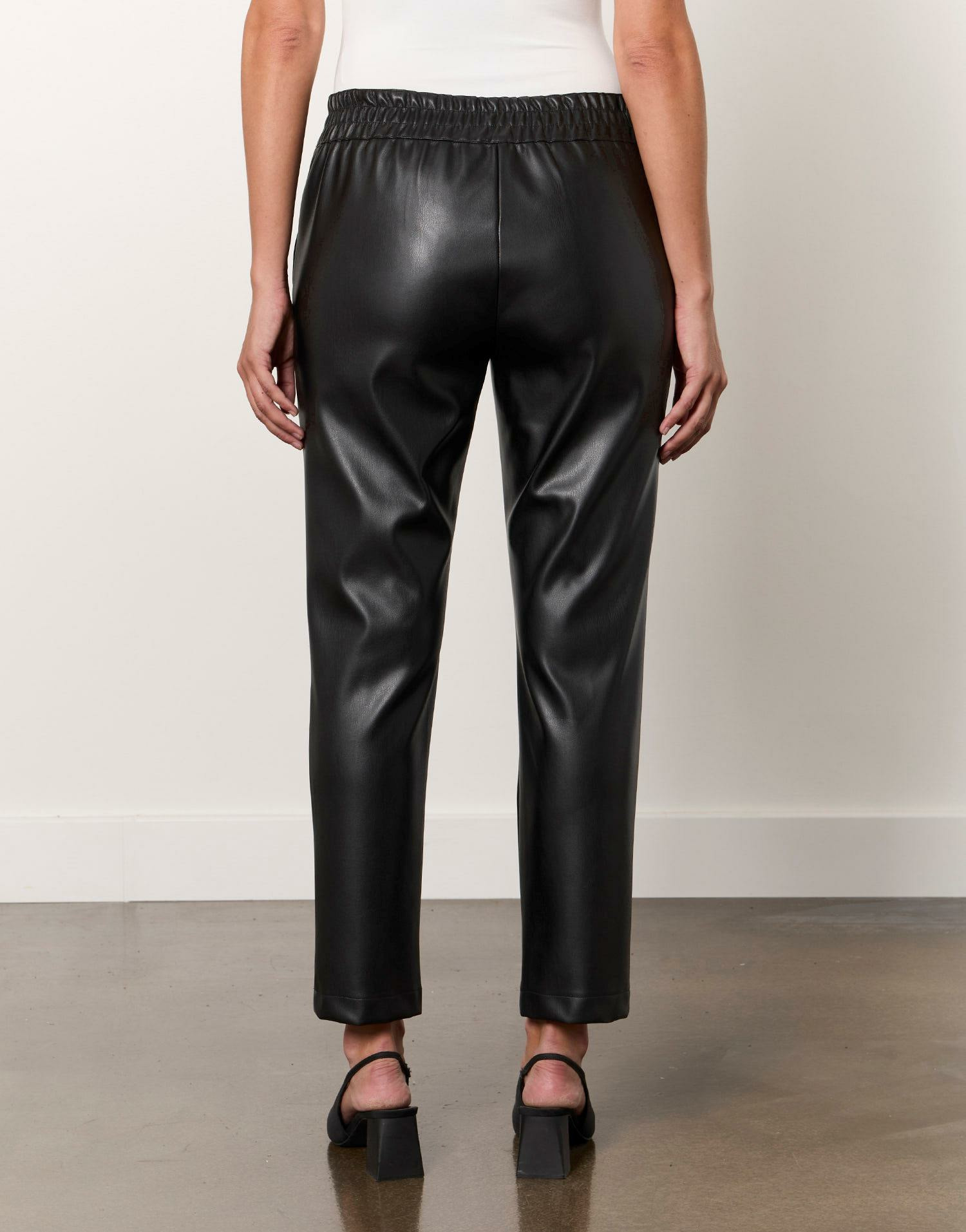 Affirmez votre style avec ce pantalon 7/8 fuselé en skaï noir, une pièce incontournable pour une allure contemporaine et élégante. Sa coupe ajustée et sa matière sophistiquée subliment chaque mouvement avec une touche urbaine.