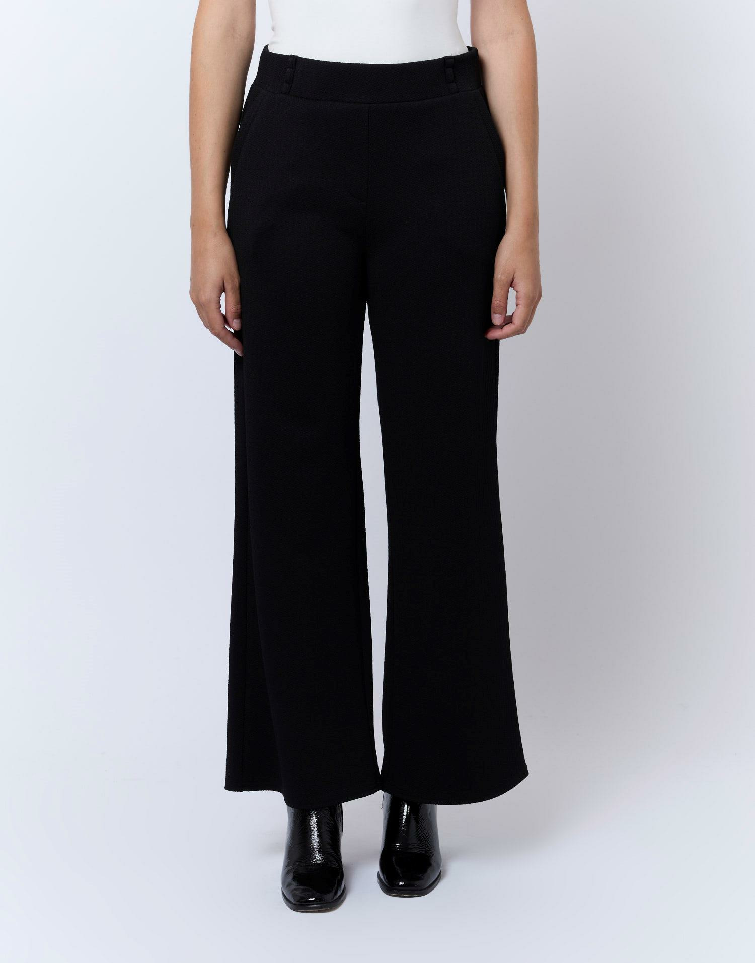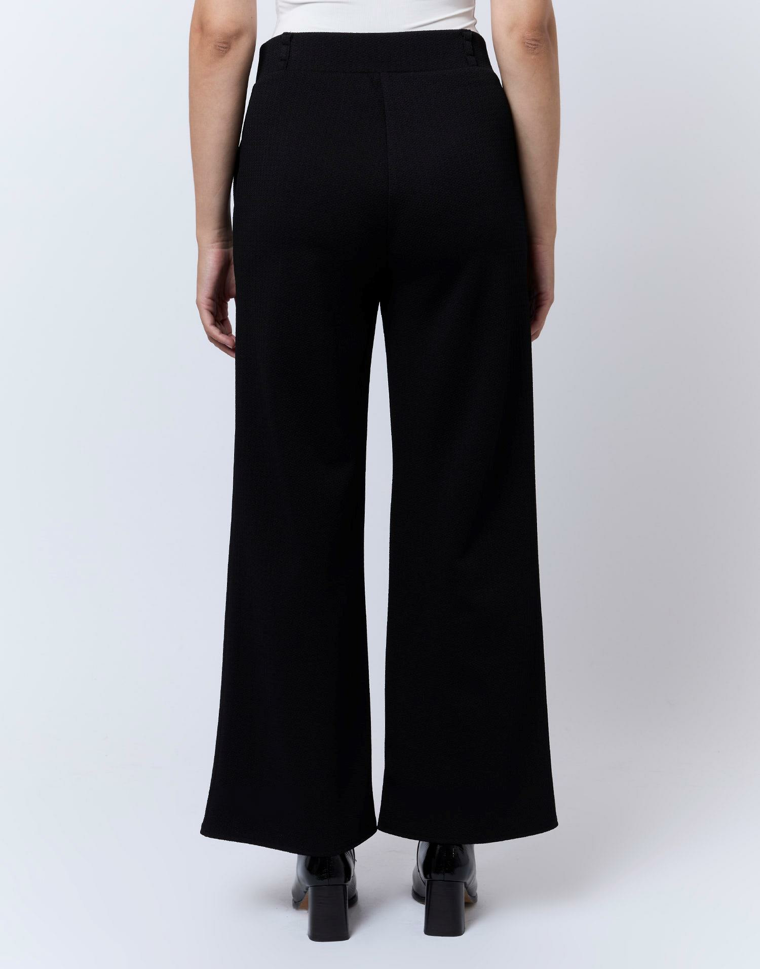 Conçu pour allier fluidité et style, ce pantalon se distingue par sa coupe large et sa longueur 7/8 qui dévoile subtilement la cheville. Sa couleur noire intemporelle facilite les associations, du bureau à vos sorties en ville. La matière légère et souple épouse parfaitement la silhouette sans la contraindre, offrant une allure décontractée mais soignée.
