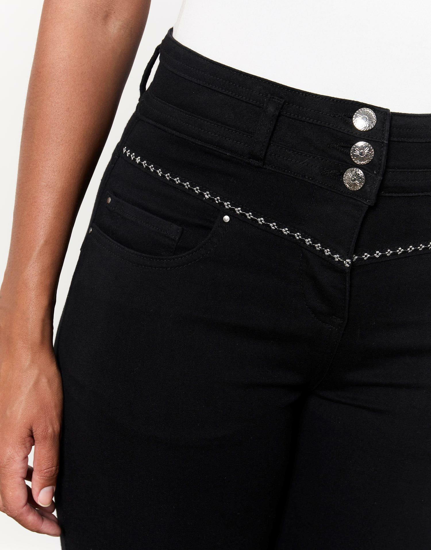 Confectionné dans un tissu uni de qualité, ce pantalon se distingue par ses délicates broderies qui apportent une touche raffinée sans surcharger le design. Sa longueur 7/8 met en valeur vos chevilles pour un look à la fois chic et décontracté, facile à associer avec des talons ou des baskets. Portez-le en noir pour une élégance intemporelle ou en kaki pour une note plus naturelle.