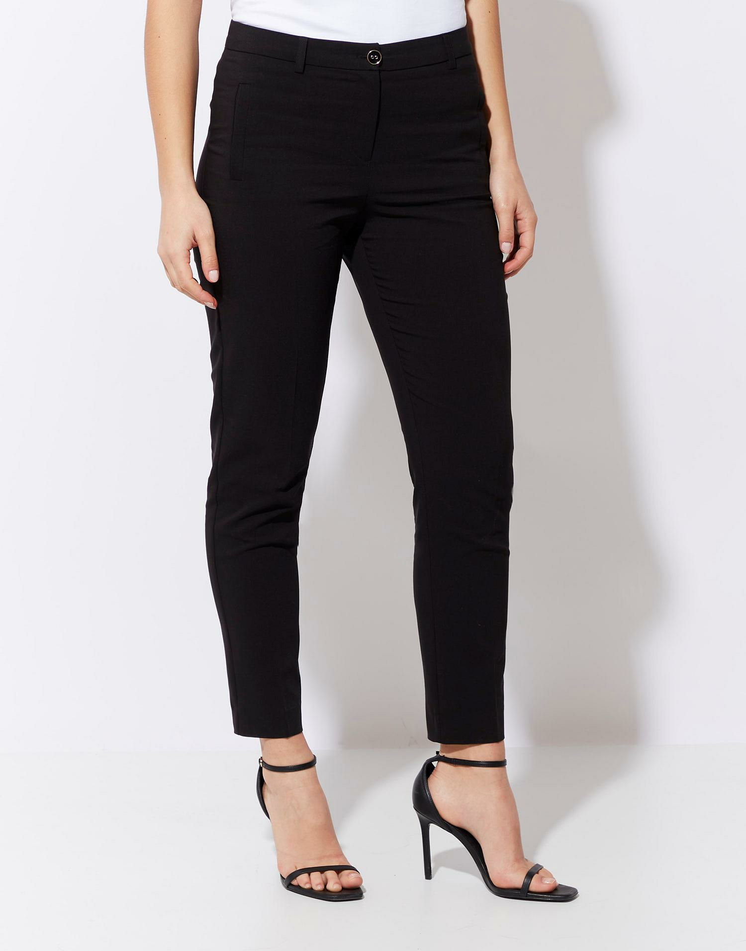 Adoptez l’élégance sans effort avec ce pantalon long cigarette noir, une alternative moderne au jean classique. Sa coupe affinée et son bouton cercle émaillé apportent une touche sophistiquée à toutes vos tenues.
