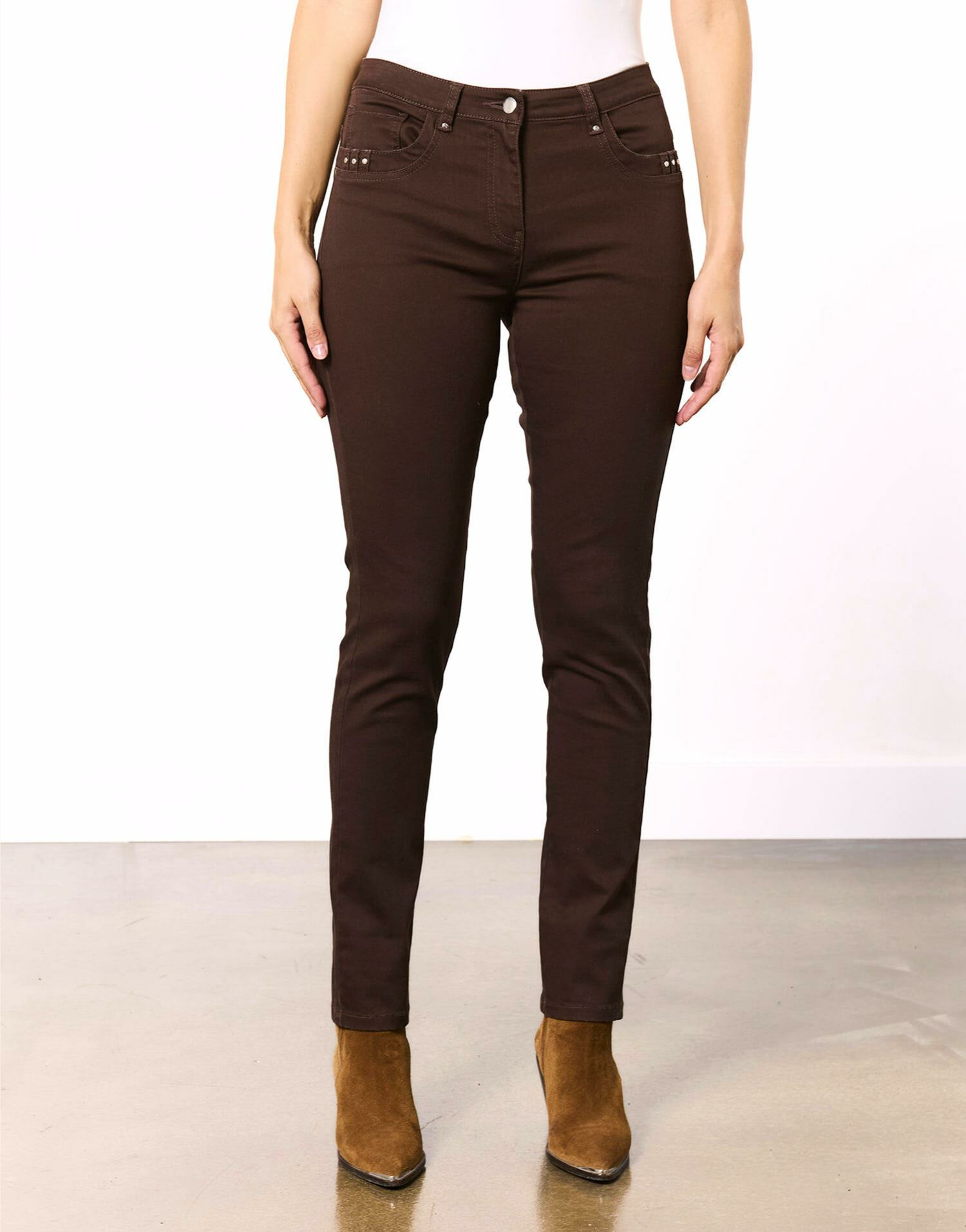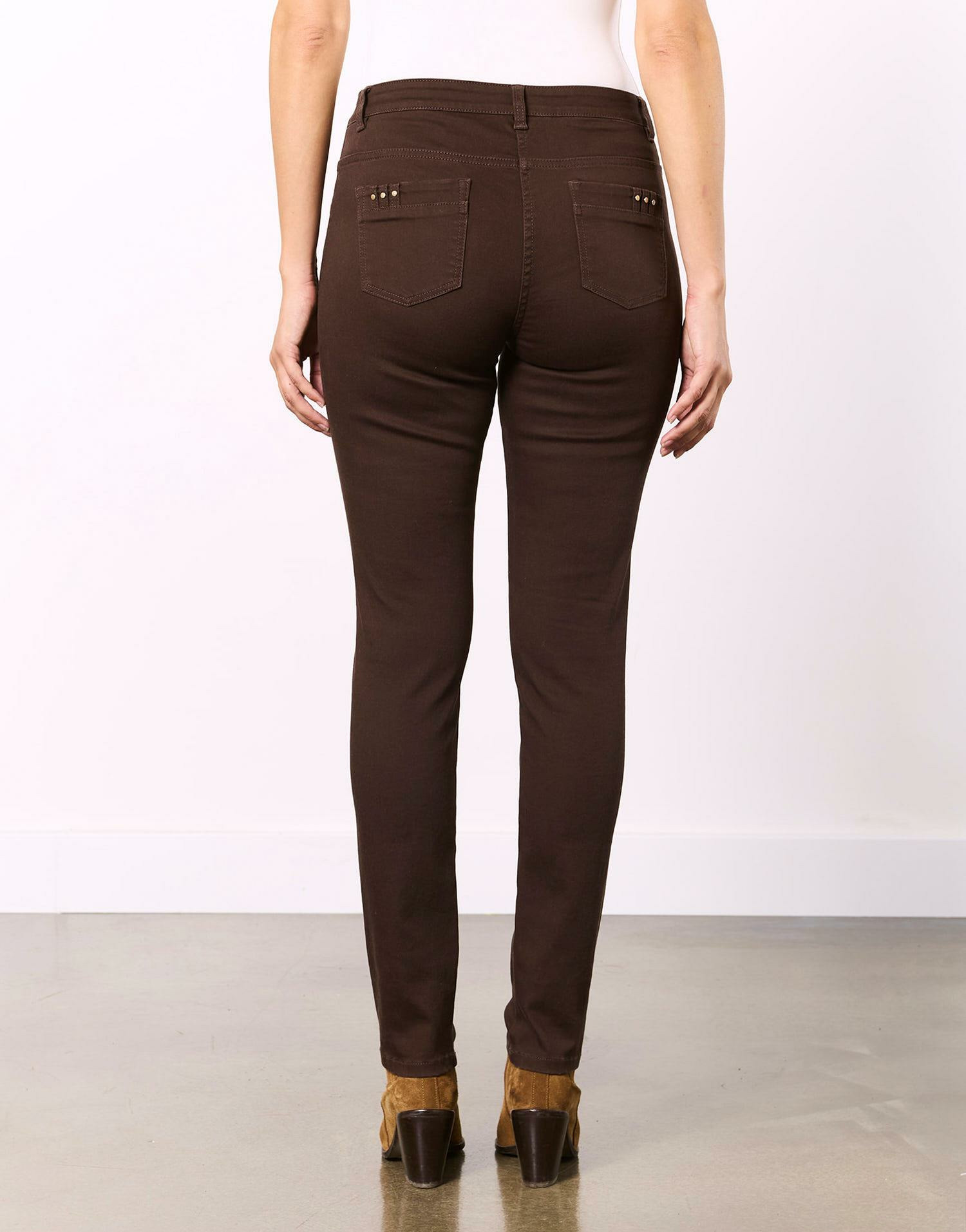 Ce pantalon vous offre un confort optimal tout en valorisant votre silhouette grâce à sa coupe droite ajustée. Les clous décoratifs sur les poches ajoutent une note subtile de caractère sans compromettre l’élégance. Facile à associer, il devient la base idéale pour créer des looks variés et stylés.