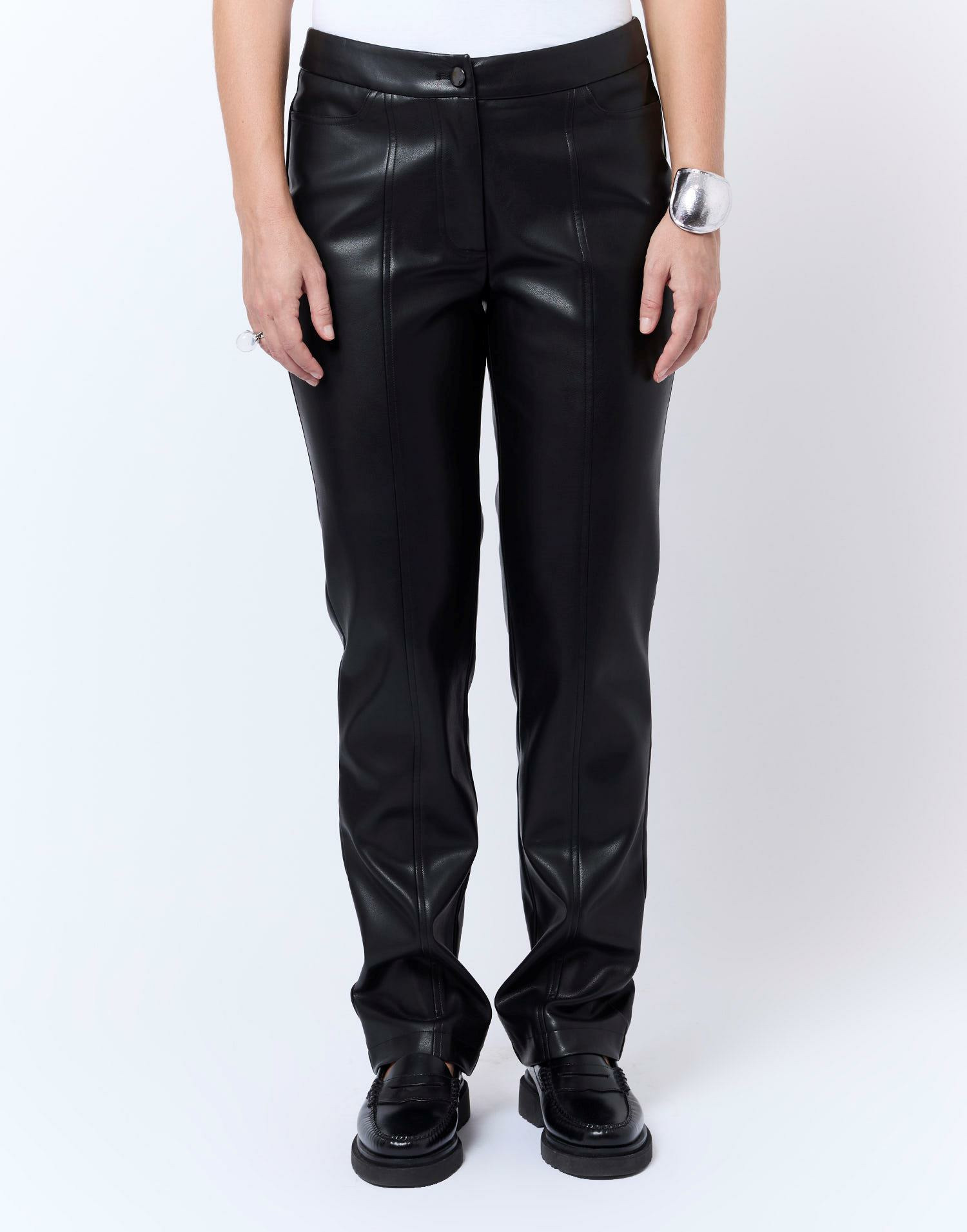 Ce pantalon simili cuir vous assure une tenue structurée et facile à associer, tout en offrant une résistance et un entretien simplifié. Il valorise votre style avec caractère, tout en restant confortable grâce à sa coupe pensée pour épouser la silhouette sans serrer.