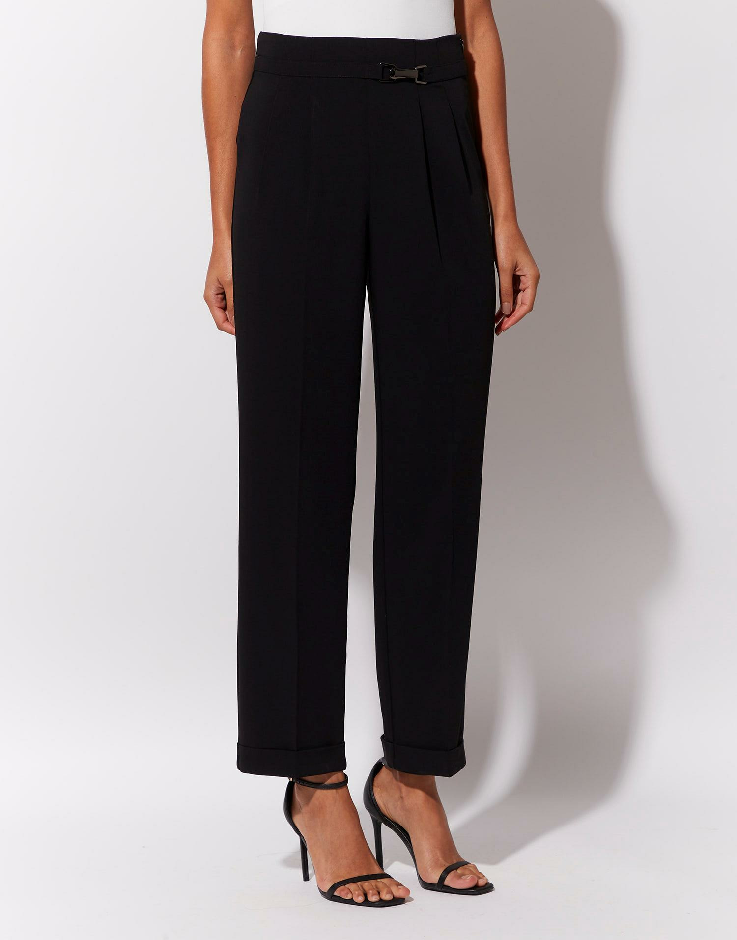 Affirmez votre style avec ce pantalon long droit noir, une pièce essentielle pour une silhouette élégante et moderne. Sa coupe fluide et sa boucle métallique à la taille subliment votre allure en toute simplicité.