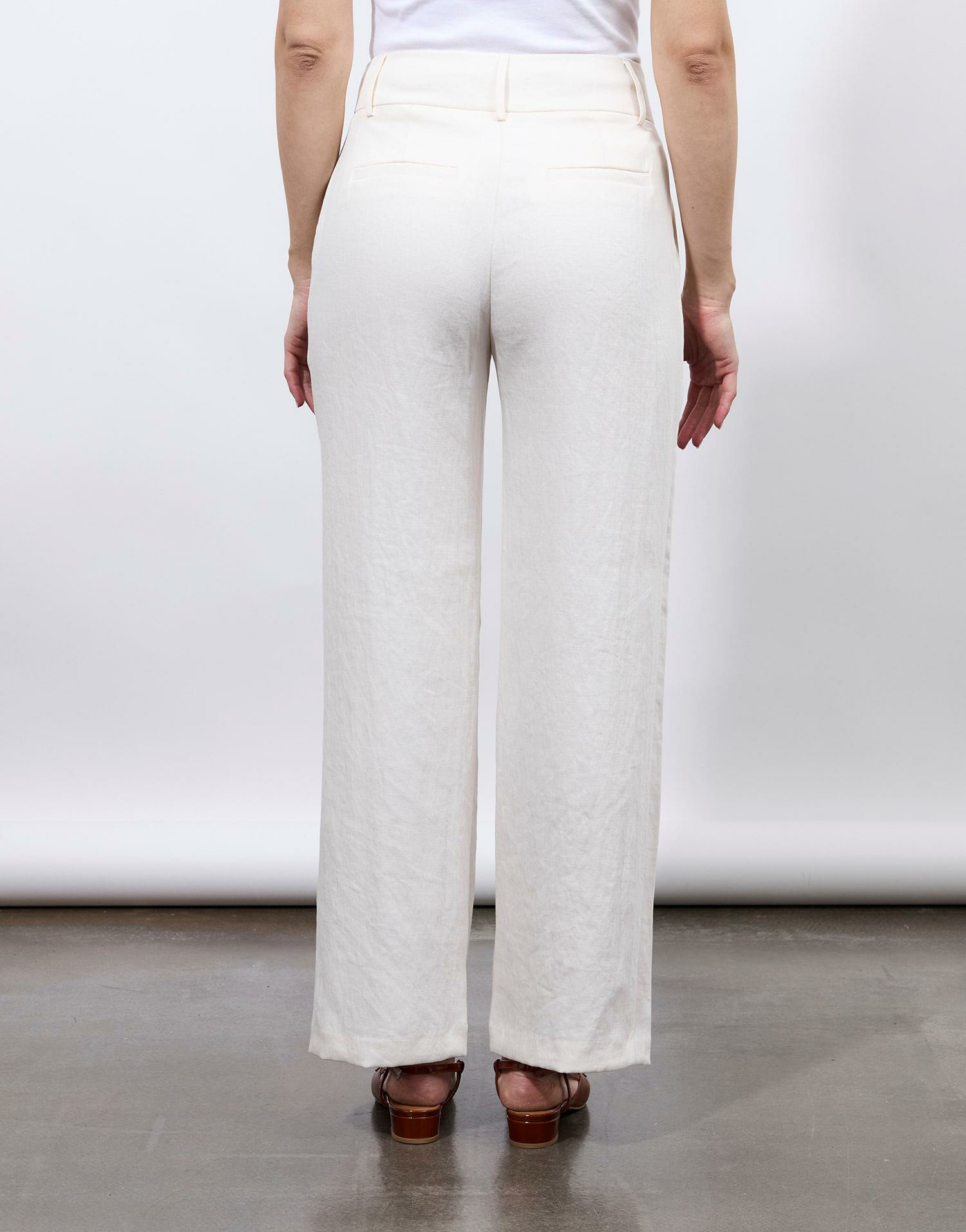 Confectionné dans une matière légère au tombé souple, ce pantalon se distingue par sa taille haute équipée de passants pour ceinture, soulignée par une fermeture à double bouton qui structure parfaitement la pièce. Facile à associer, il accompagne aussi bien vos looks professionnels que vos tenues casual chics, pour une allure résolument moderne et raffinée.