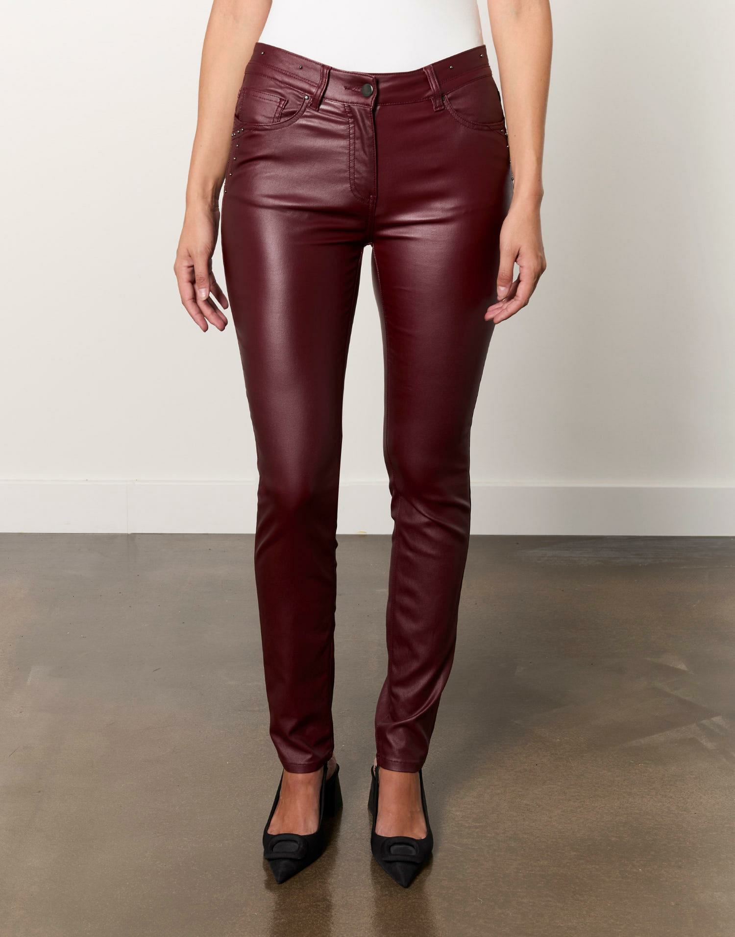 Ce pantalon long slim allonge visuellement les jambes grâce à sa coupe près du corps, tout en garantissant un confort optimal pour un port au quotidien. Sa teinte bordeaux profonde apporte une note sophistiquée qui se marie facilement avec des basiques ou des pièces plus audacieuses.