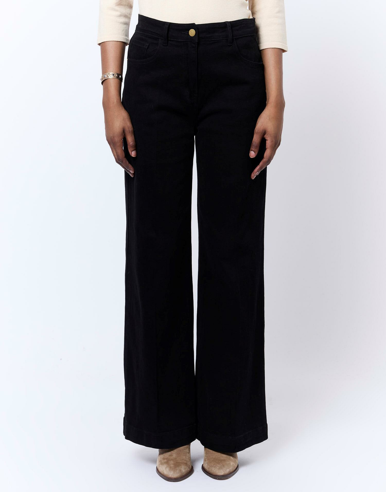Le pantalon long uni noir RIU Paris allie élégance et confort pour sublimer votre silhouette au quotidien. Sa coupe wide leg fluide apporte une touche moderne et décontractée, parfaite pour toutes les occasions.