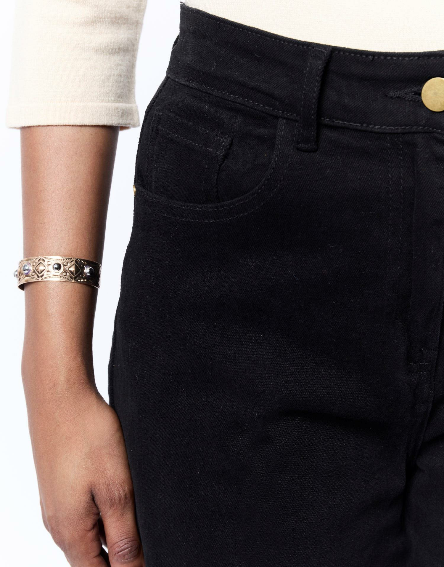 Disponible en noir uni, ce pantalon long est conçu pour durer et accompagner toutes vos envies mode. Sa composition garantit une tenue impeccable et un tombé naturel. La taille est élastiquée pour un maintien parfait sans contrainte.