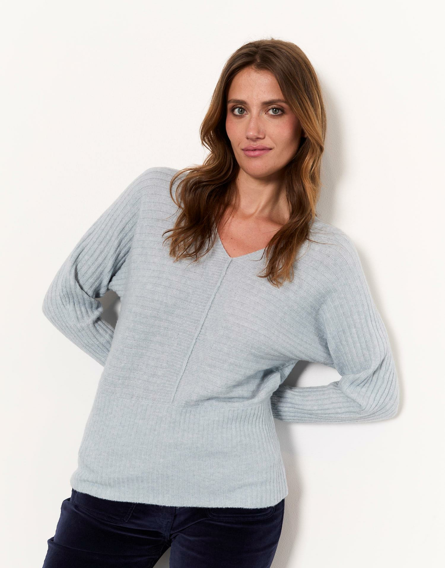 Question ? Peut-on porter ce pull avec des accessoires ? Réponse. Absolument, son col V met en valeur colliers et écharpes fines.
