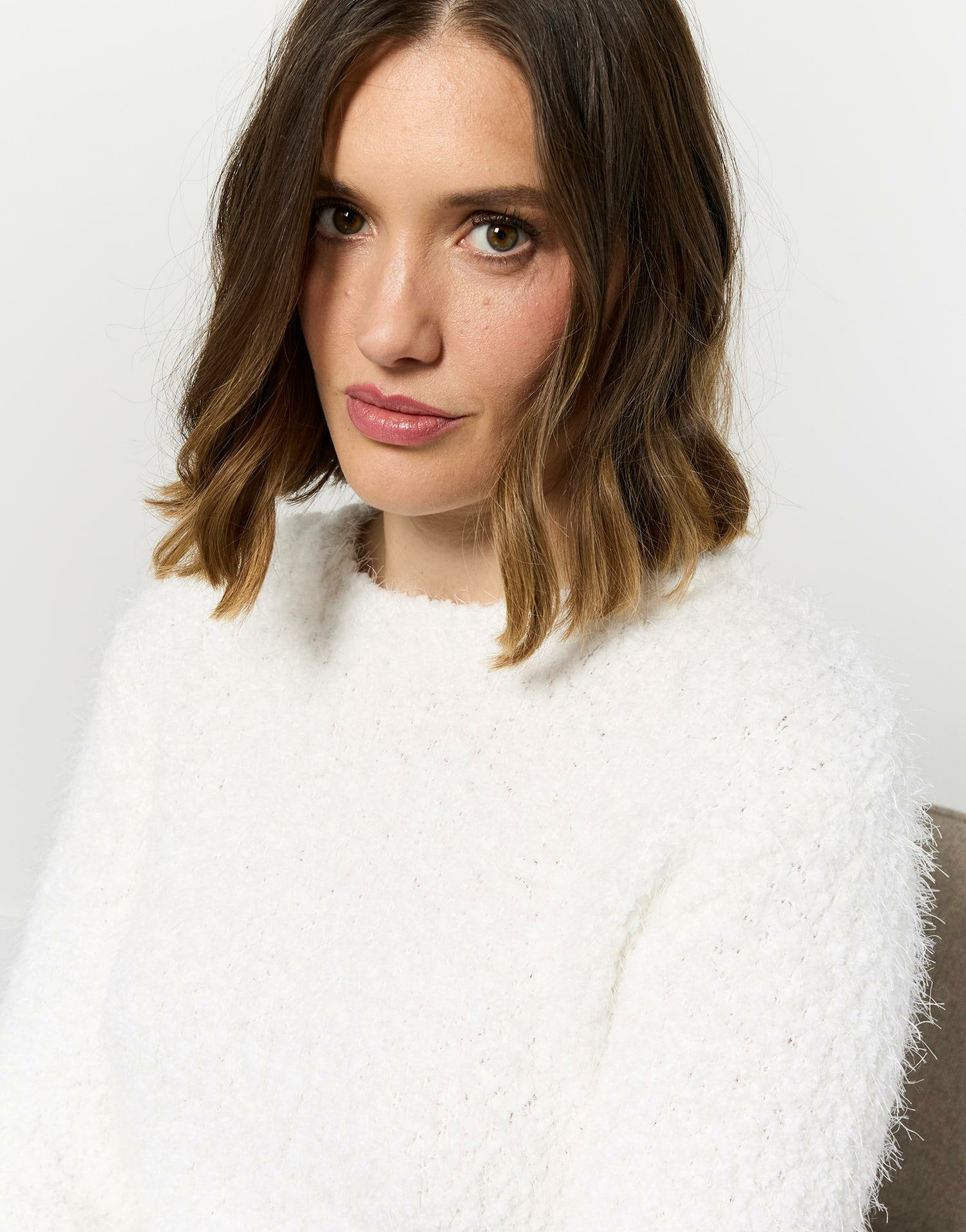 Ce pull épais blanc incarne l’essence du confort et de l’élégance minimaliste. Sa maille douce enveloppe la peau pour une sensation cocooning immédiate, idéale pour affronter les journées fraîches avec style.