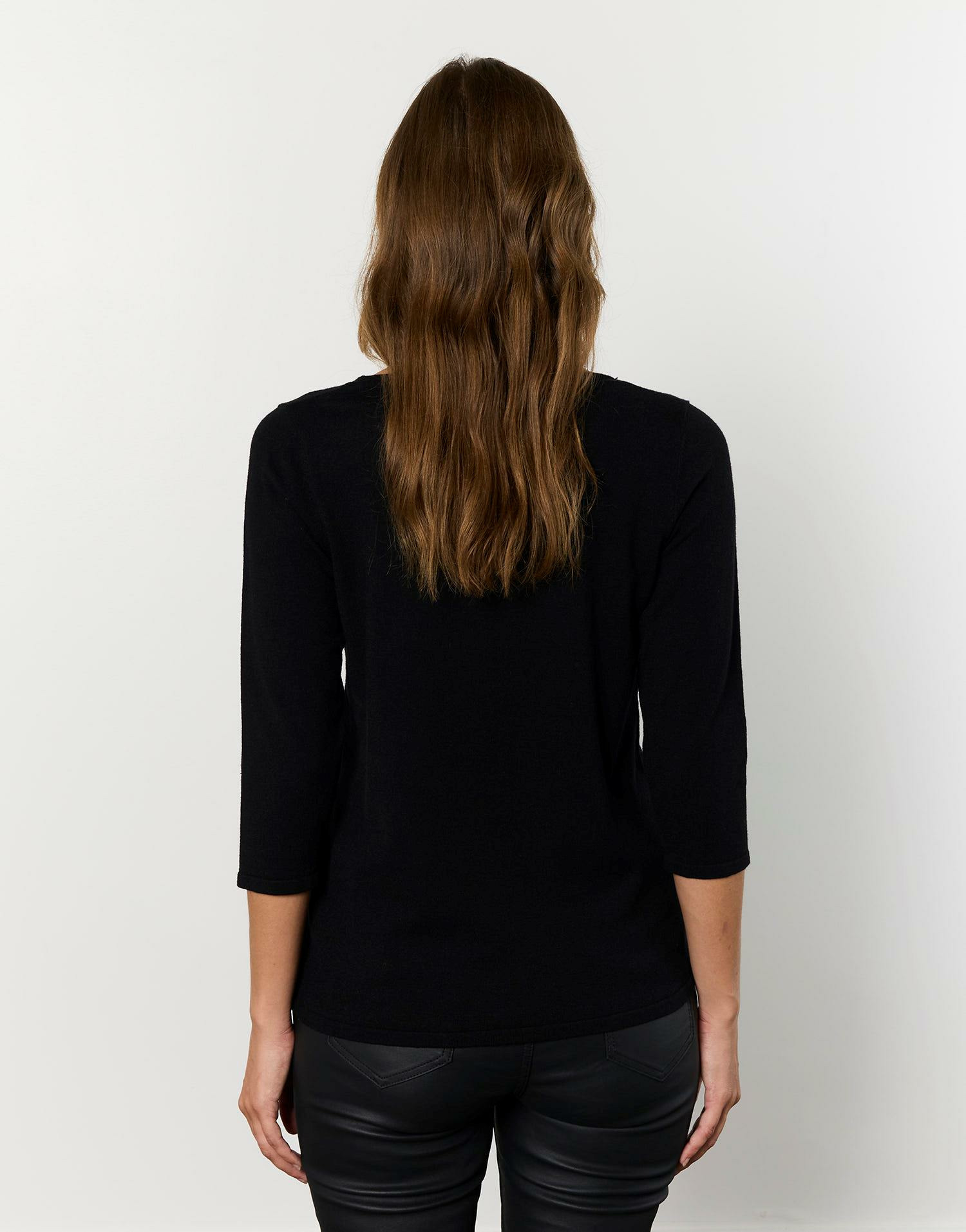 Fabriqué dans une matière fine et légère, ce pull noir se distingue par ses motifs précis et sa coupe ajustée. Disponible en plusieurs tailles, il s’adapte parfaitement à votre morphologie pour un maintien optimal.