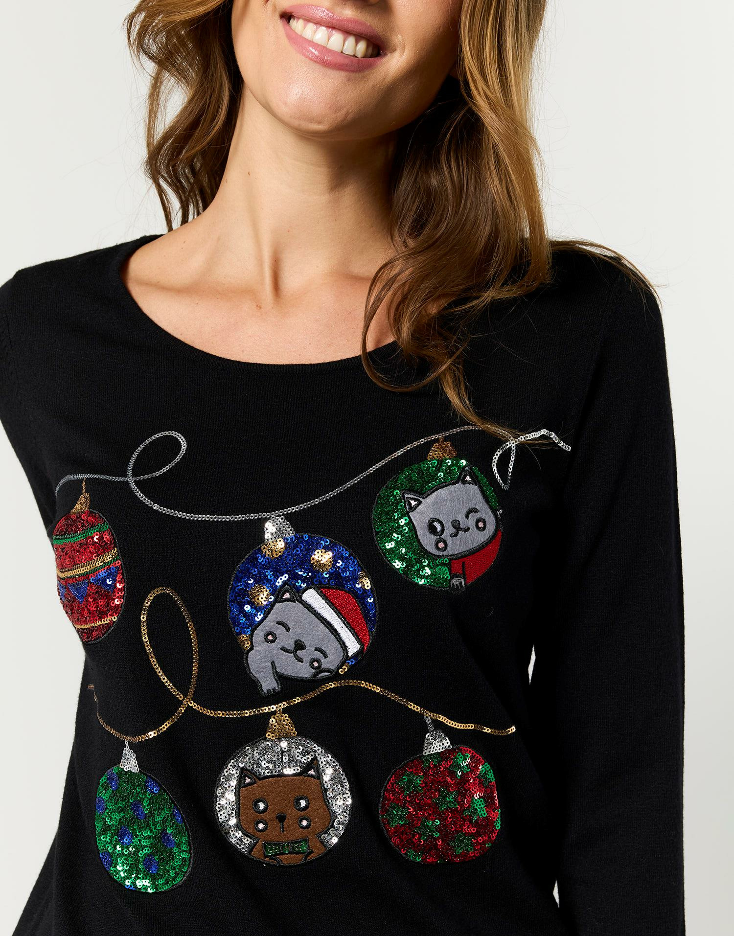 Osez un pull de Noël qui sort du lot et affirme votre style avec audace. Ce modèle noir signé RIU Paris allie motifs festifs et charme félin pour des fêtes inoubliables.
