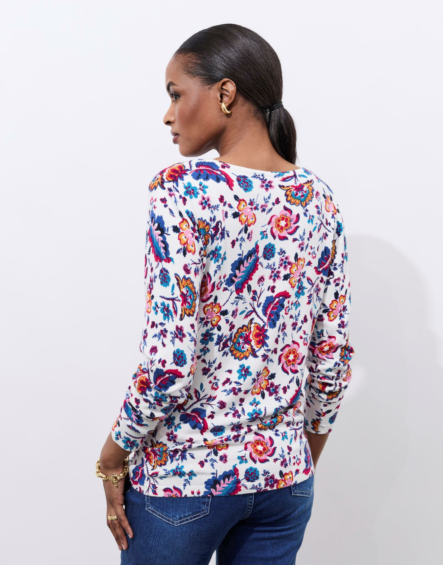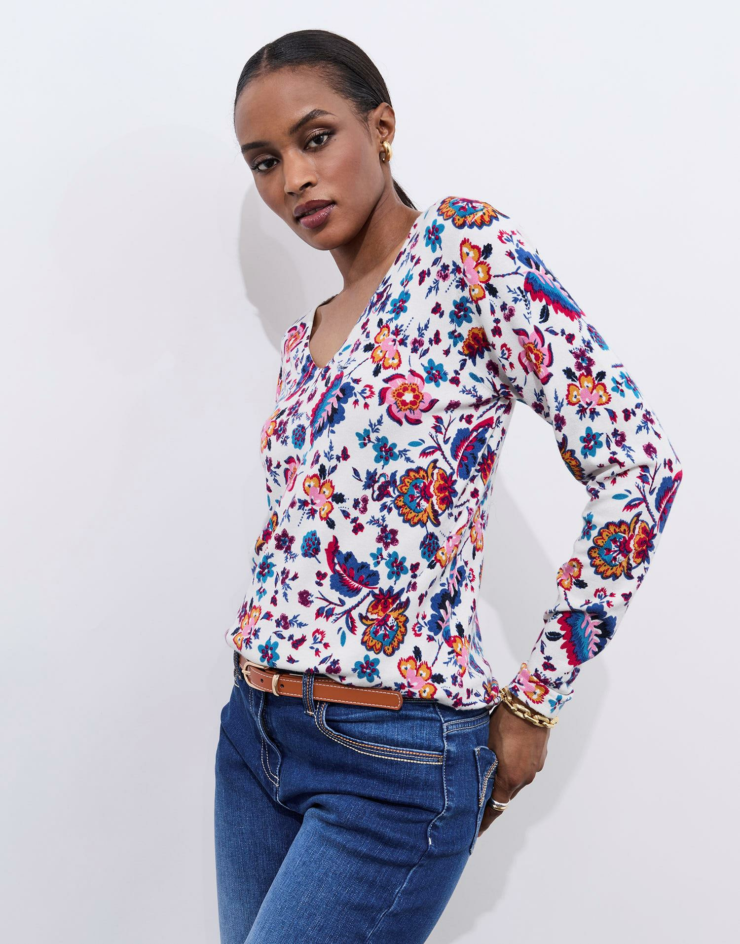 Apportez une touche de fraîcheur et de féminité à votre garde-robe avec ce pull fin imprimé fleuri. Léger et élégant, il s’adapte parfaitement à vos envies de style au quotidien.