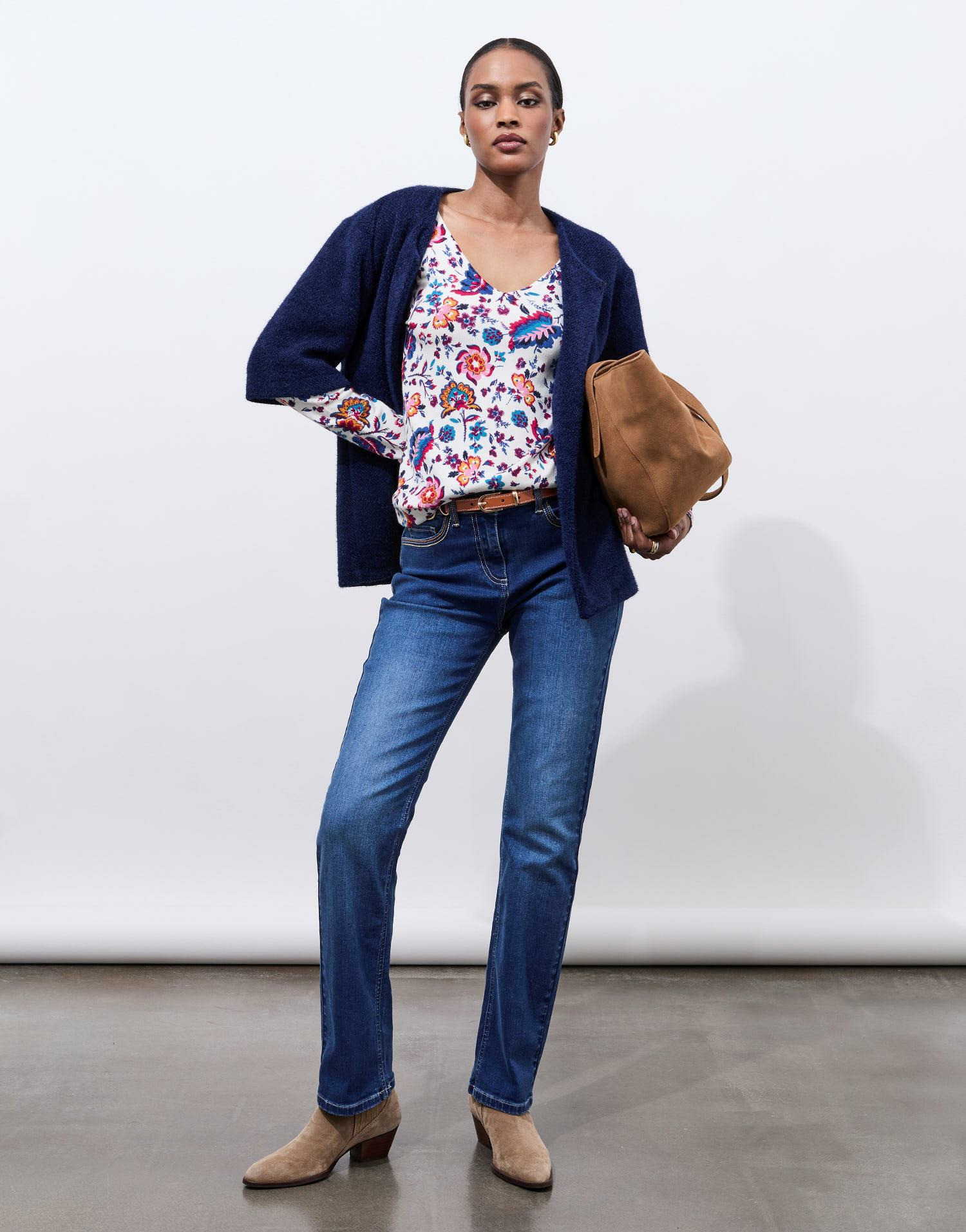Question ? Ce modèle est-il disponible en d’autres couleurs ? Réponse. Ce modèle est proposé uniquement en écru avec imprimé fleuri multicolore.