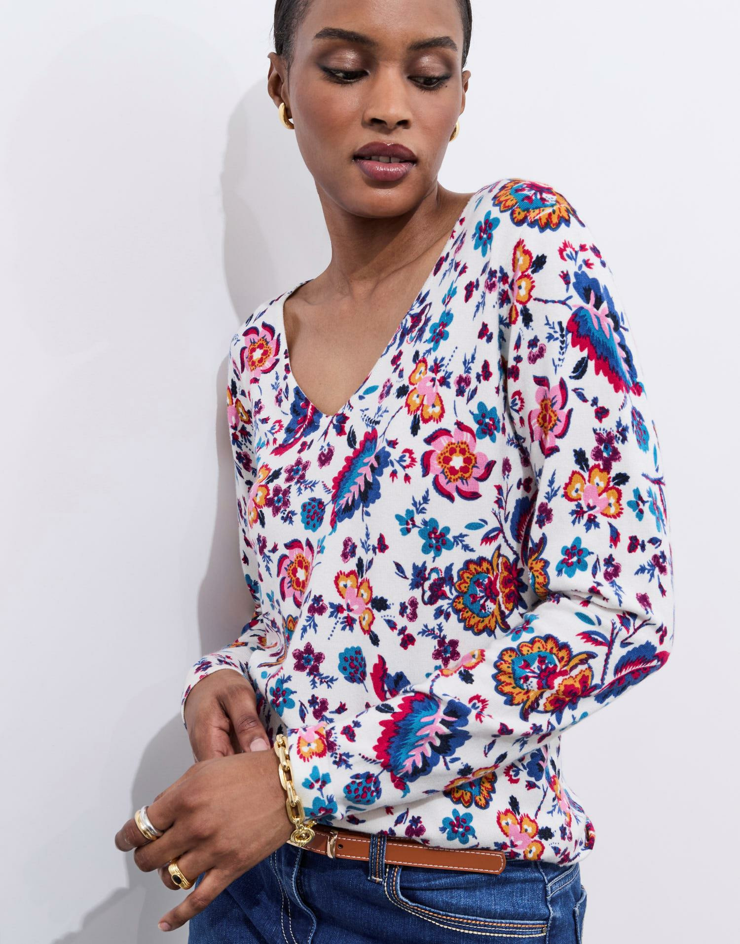 Conçu pour être agréable à porter, ce pull léger vous assure confort et liberté de mouvement tout au long de la journée. Son imprimé coloré apporte une note de gaieté sans excès, idéale pour renouveler vos basiques avec élégance.