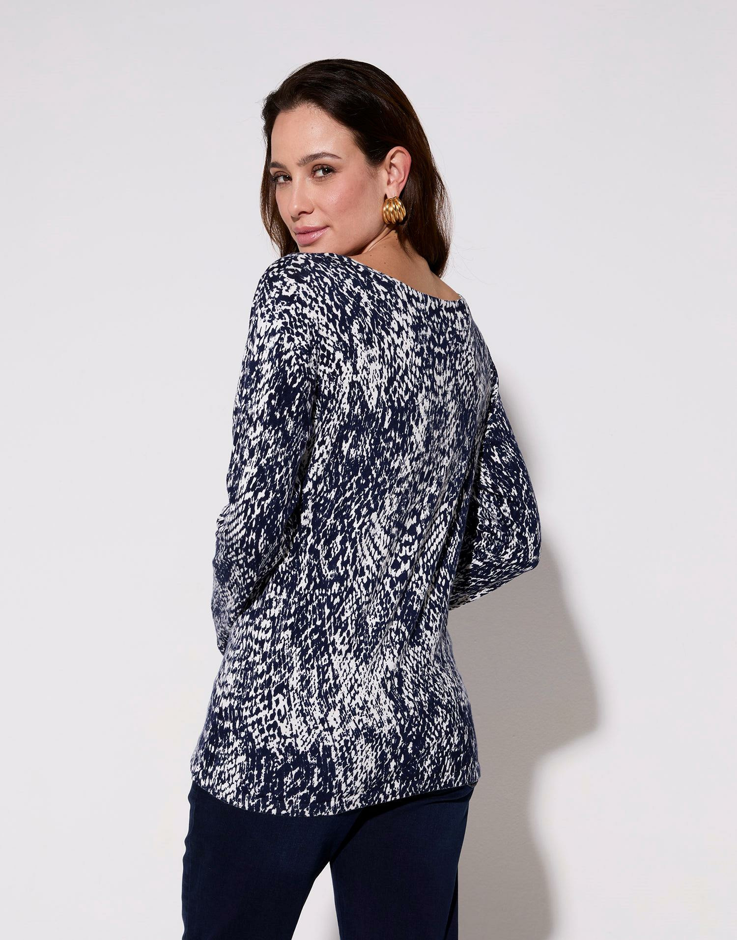 Confectionné pour allier confort et style, ce pull se distingue par son imprimé python moderne et ses manches longues qui apportent une touche sophistiquée à vos tenues. Polyvalent, il s’associe aussi bien à un jean décontracté qu’à un pantalon chic ou une jupe féminine, offrant une allure affirmée en toute occasion.