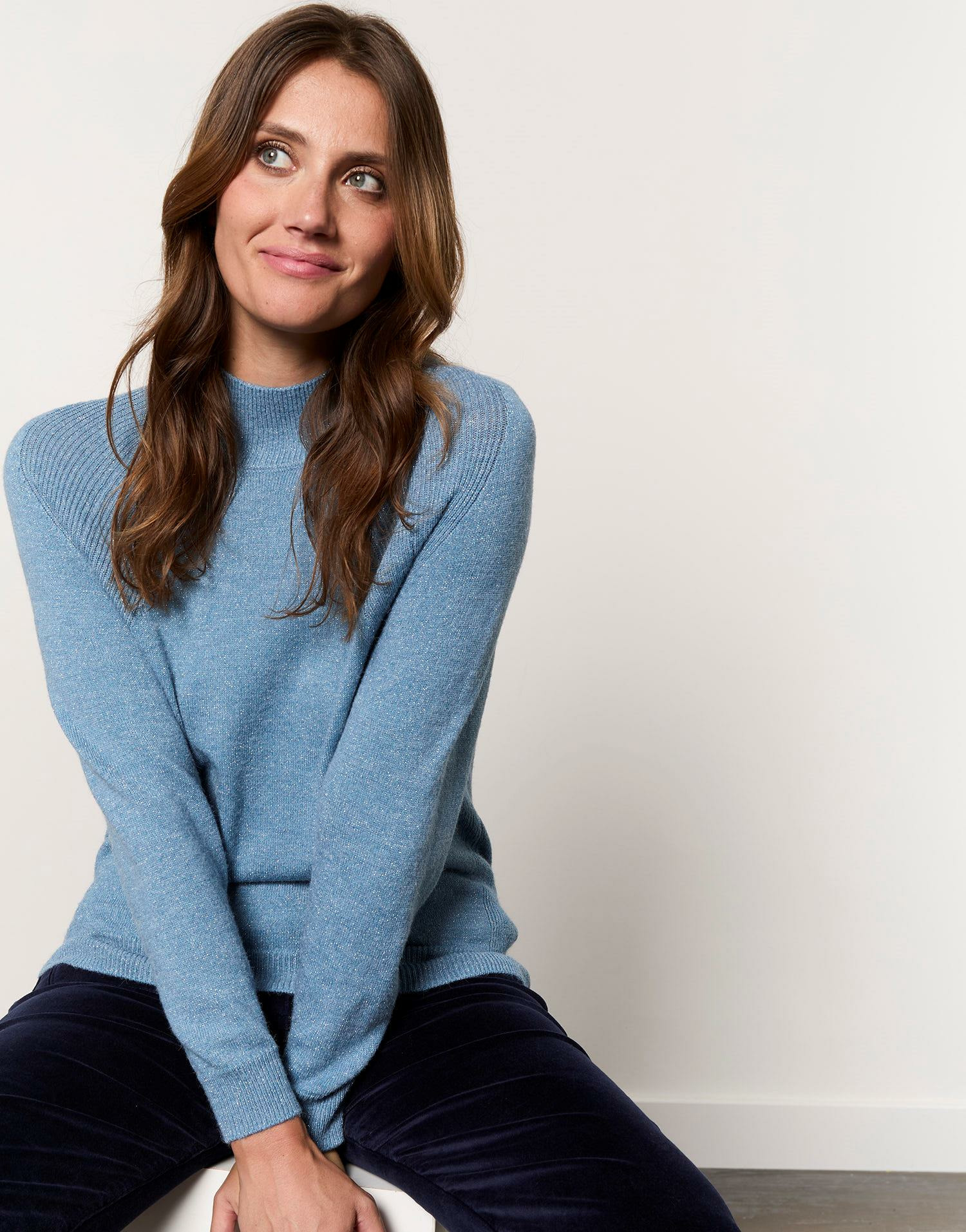 Confectionné en lurex, ce pull offre un subtil éclat qui capte la lumière sans en faire trop. Sa coupe ajustée épouse délicatement le corps, tandis que le col montant souligne le cou avec finesse. Parfait avec un jean, il se prête aussi à des associations plus habillées pour varier les styles selon vos envies.