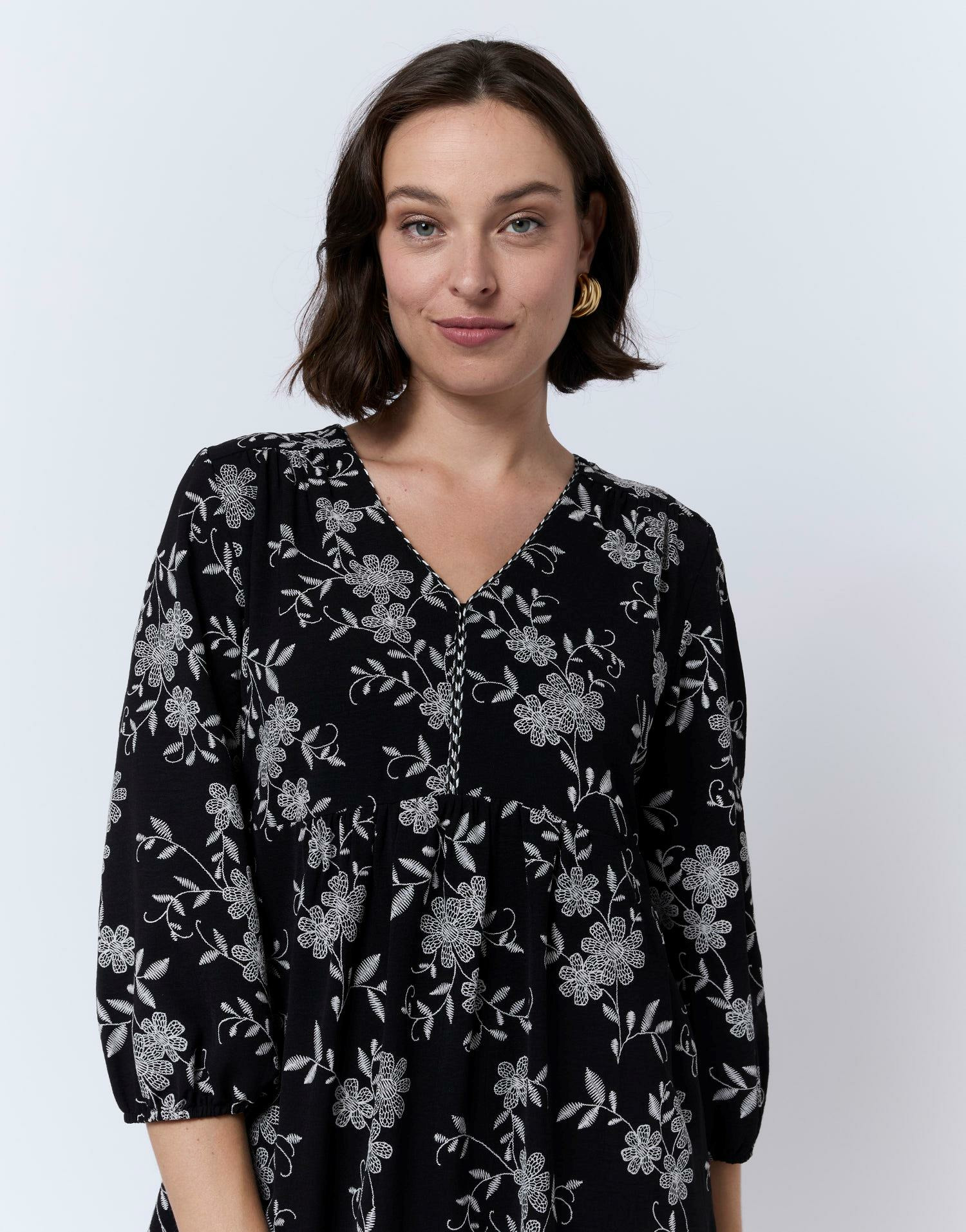 Apportez une touche de fraîcheur et d’élégance à votre dressing avec cette robe courte à imprimé fleuri noir. Son design raffiné et sa coupe féminine subliment la silhouette en toute simplicité.
