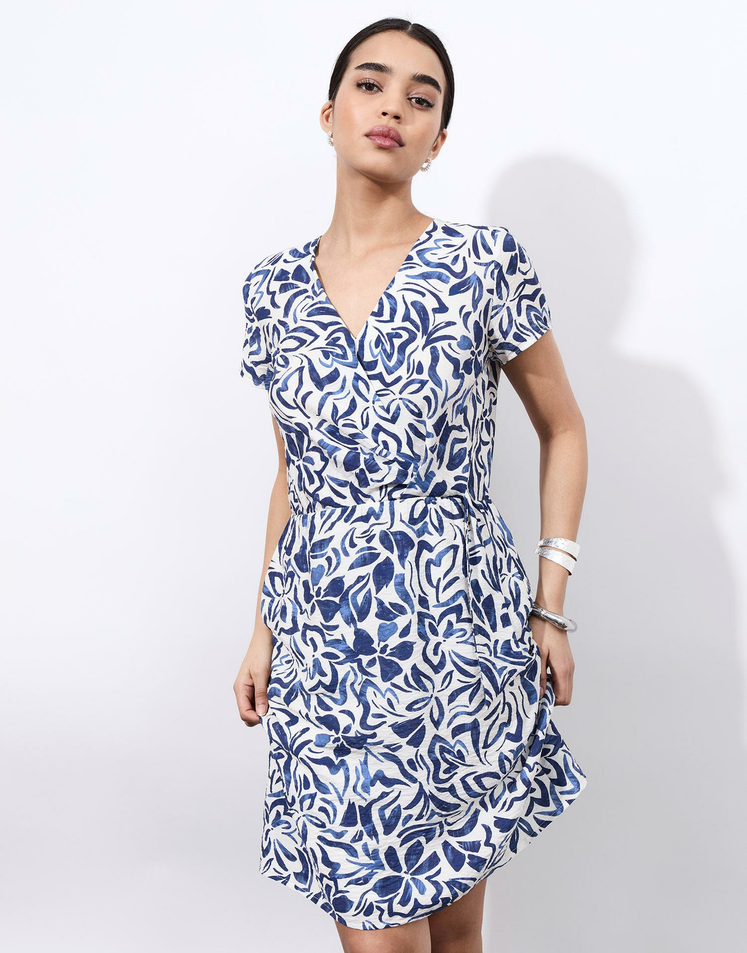 Affichez une élégance naturelle avec cette robe courte imprimée BLEU signée RIU Paris. Son imprimé floral graphique dynamise votre look tout en soulignant votre féminité avec subtilité.
