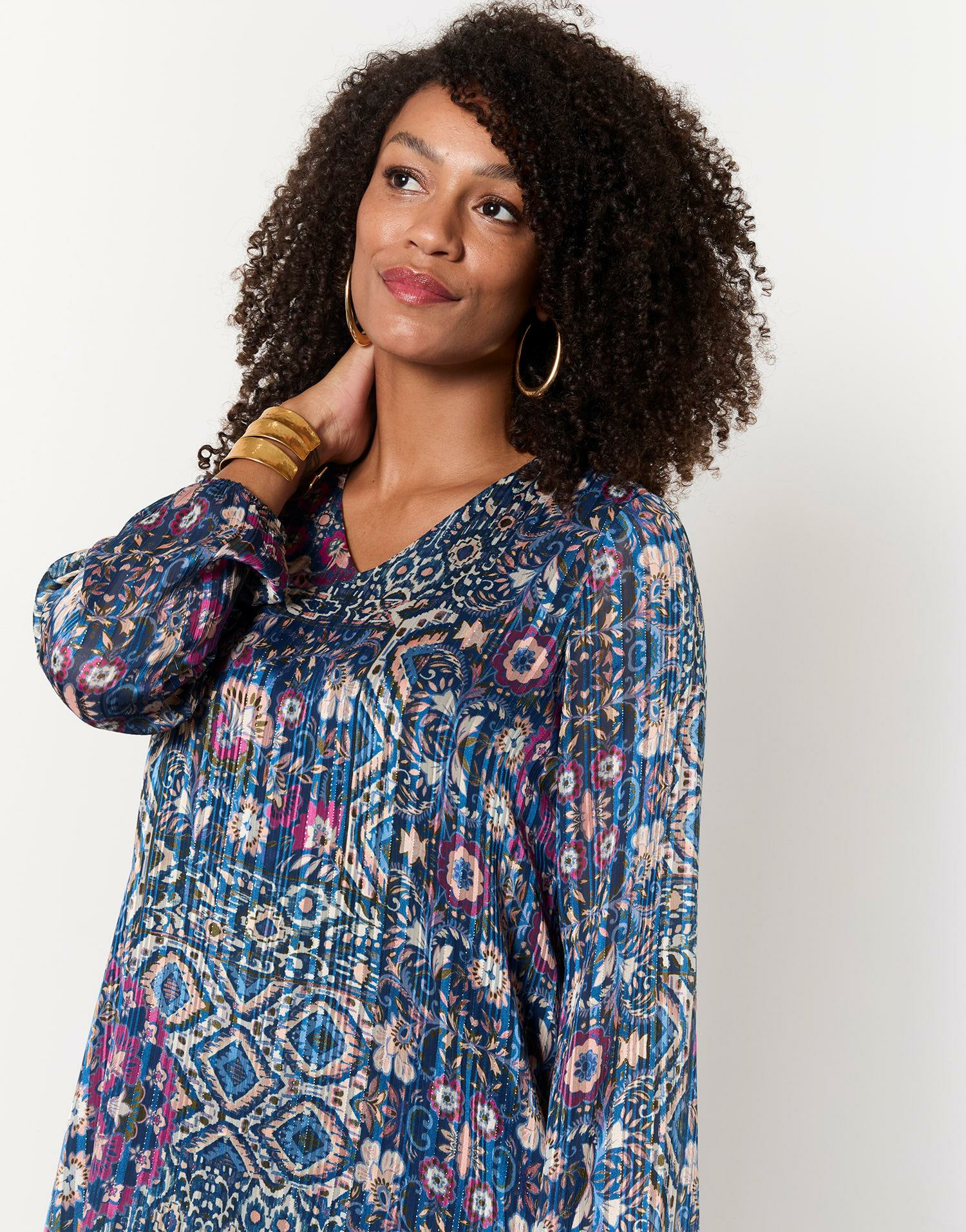 Question ? Cette robe est-elle adaptée pour une soirée ? Réponse. Oui, son imprimé et sa coupe élégante la rendent parfaite pour un look chic et décontracté en soirée.