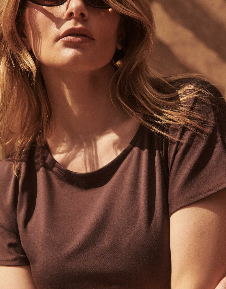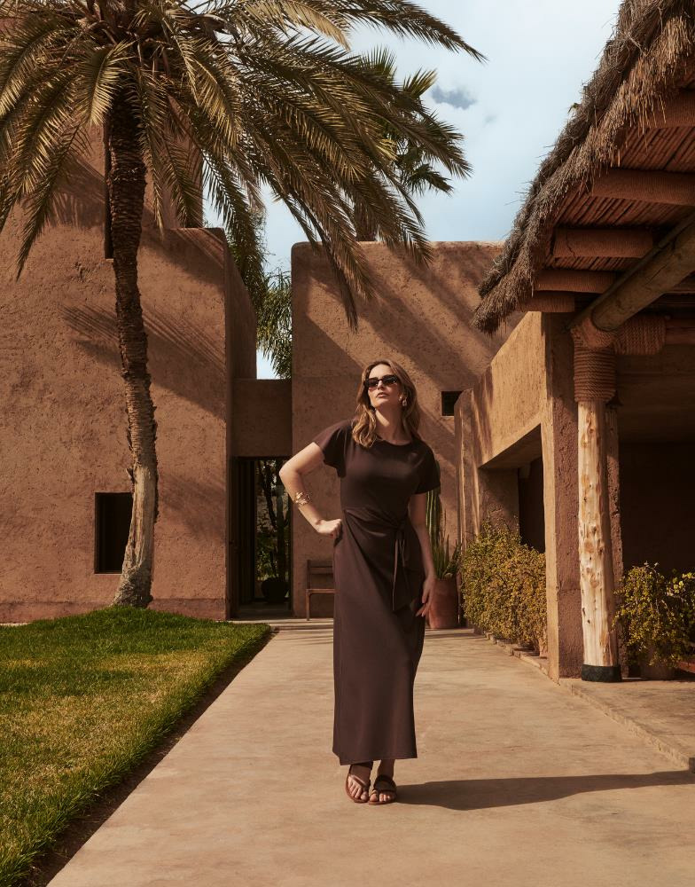 Conçue pour allier confort et style, cette robe fluide épouse délicatement les formes tout en offrant une liberté de mouvement idéale. Sa teinte marron profonde apporte une touche naturelle et chaleureuse, parfaite pour une allure sophistiquée en journée comme en soirée. Minimaliste et versatile, elle se prête à toutes les occasions, du bureau aux sorties décontractées.