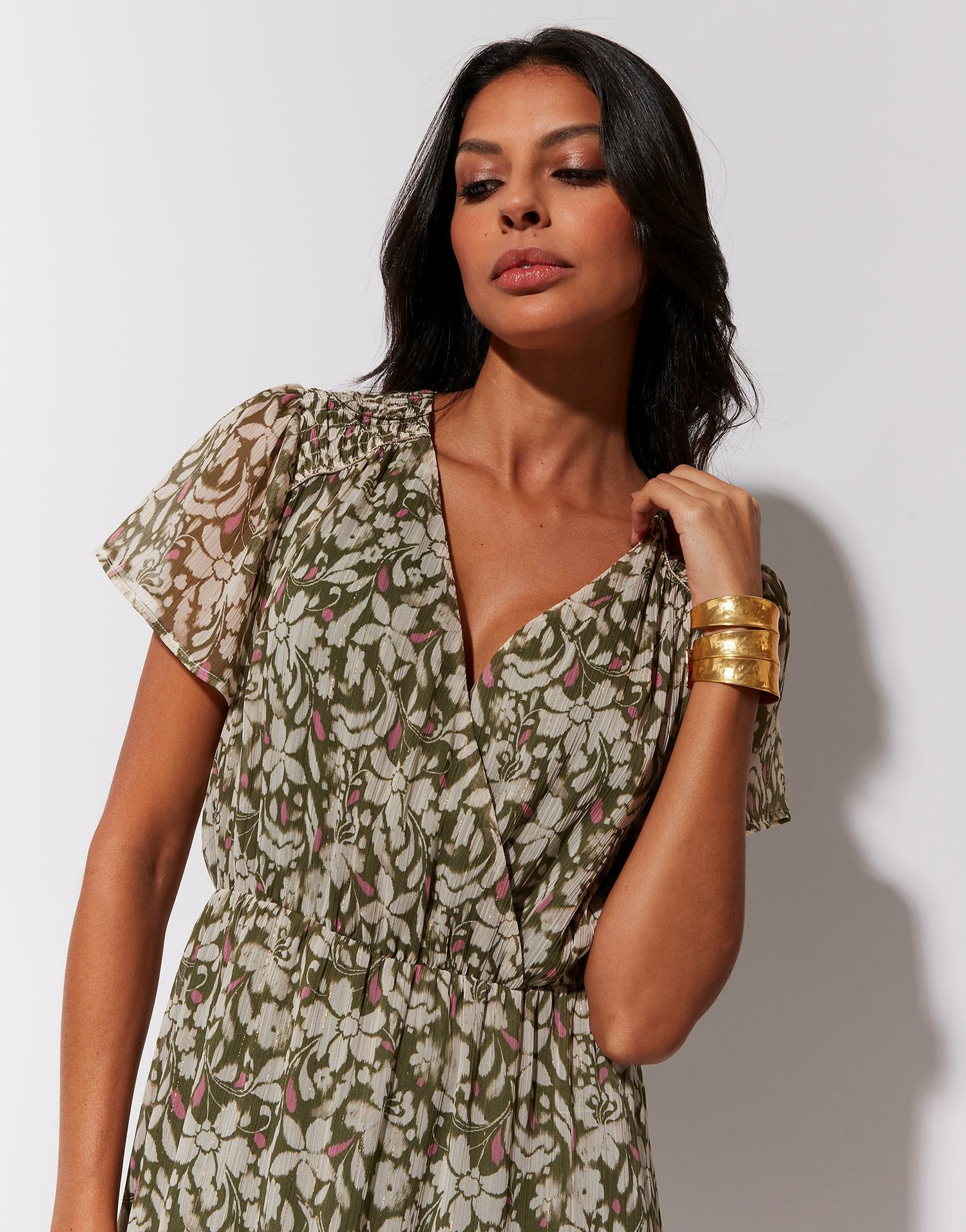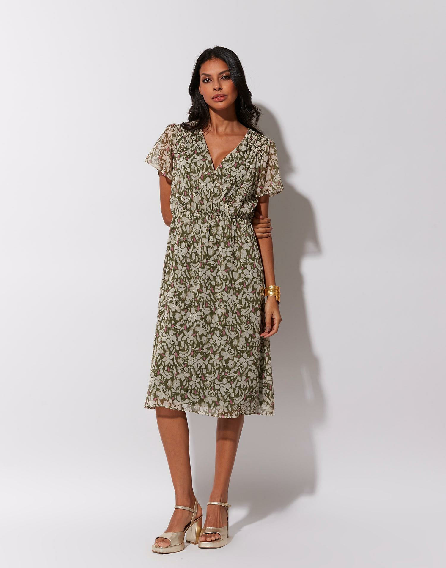 Laissez-vous séduire par la robe midi imprimé à fleurs KAKI, un équilibre parfait entre élégance naturelle et légèreté estivale. Son imprimé floral délicat et sa coupe fluide incarnent une féminité moderne et raffinée.