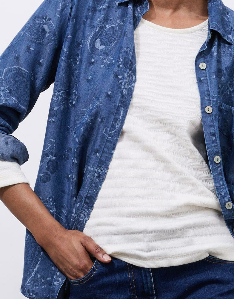 Peut-on le porter en toutes saisons ? Oui, il se porte seul en été ou sous une veste légère en mi-saison.