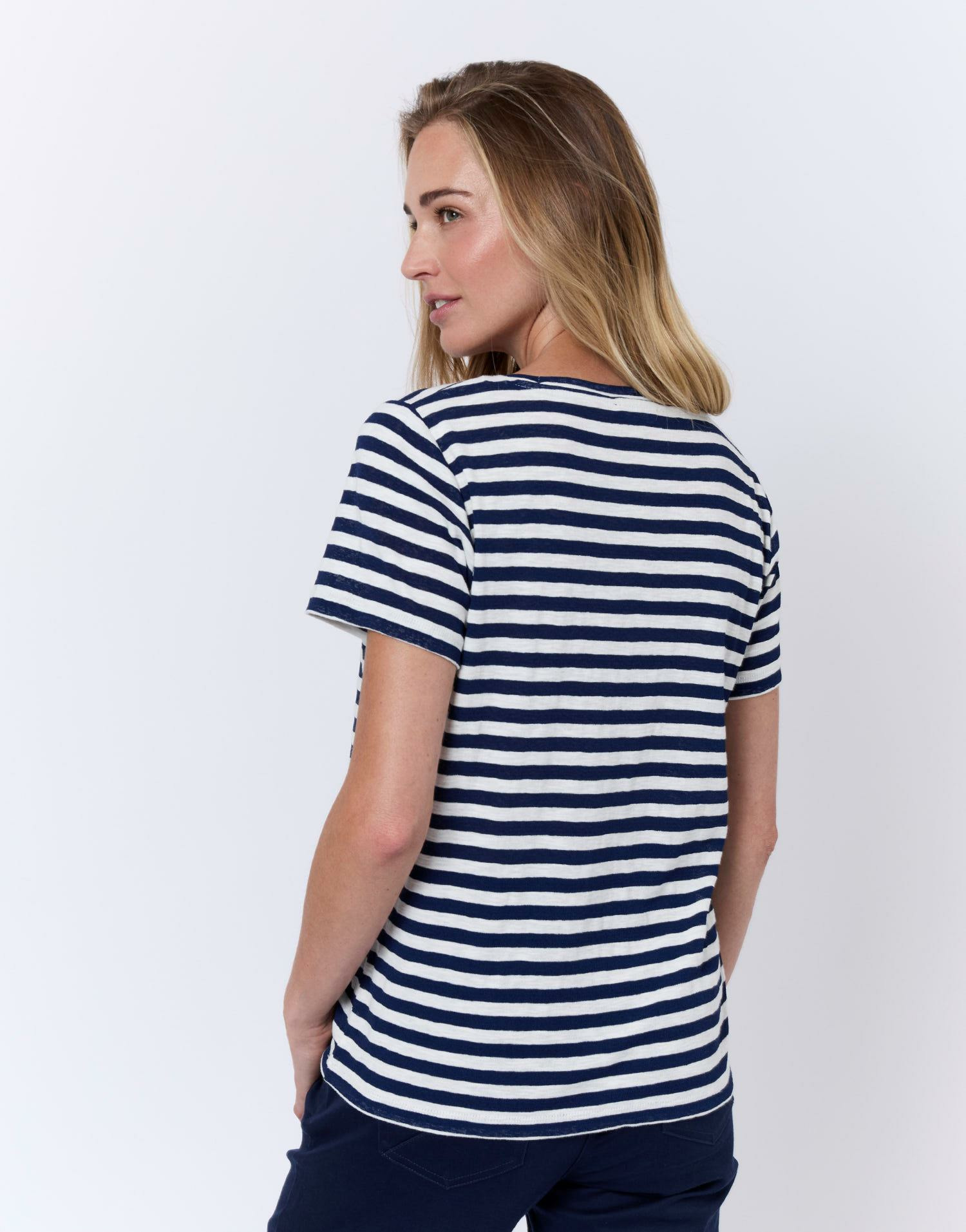 Ce tee-shirt marinière est idéal pour celles qui recherchent un basique intemporel avec une signature originale. Facile à porter au quotidien, il apporte une touche de fraîcheur à toutes vos tenues, tout en offrant une sensation agréable sur la peau grâce à sa matière respirante.