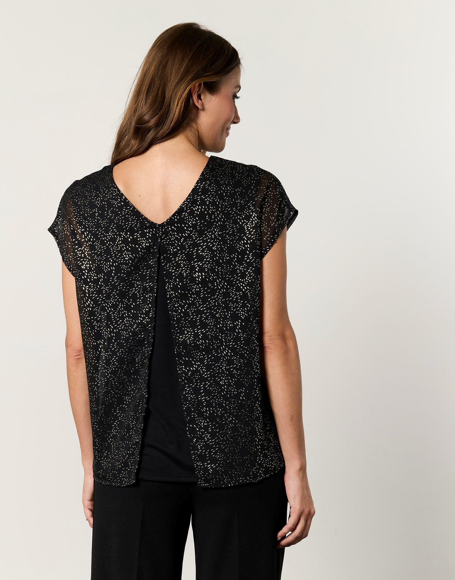 Brillez intensément lors de vos soirées avec ce top manches courtes noir signé RIU Paris. Son design bi-matière et son dos ouvert apportent une allure contemporaine et élégante à votre look festif.