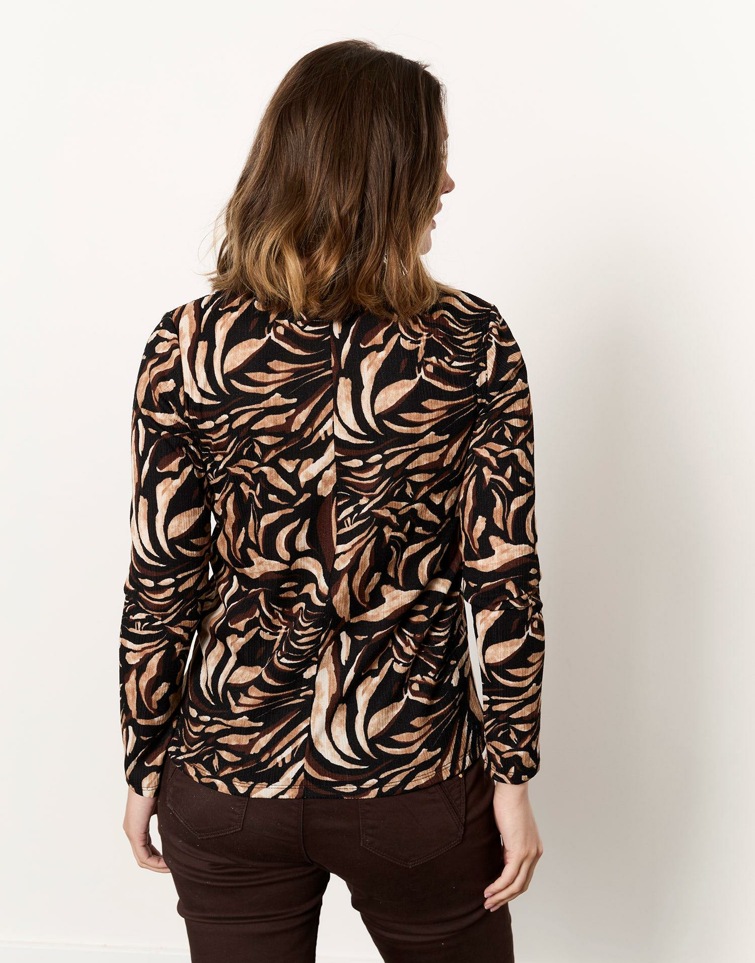 Ce top manches longues imprimé marron est-il adapté aux peaux sensibles ? Oui, sa matière douce limite les risques d’irritation.