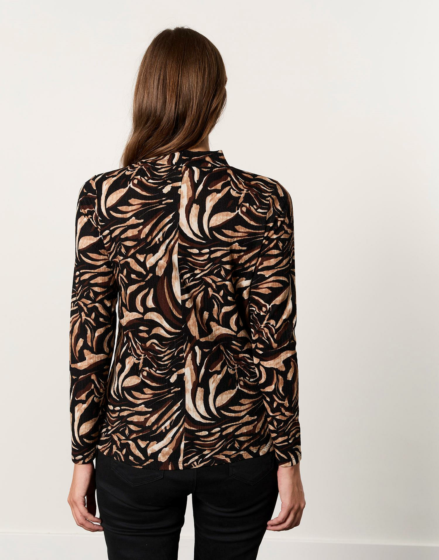 Affirmez votre style avec ce top manches longues au col cheminée, sublimé par un imprimé marron audacieux. Une pièce qui allie élégance et modernité pour sublimer toutes vos tenues.