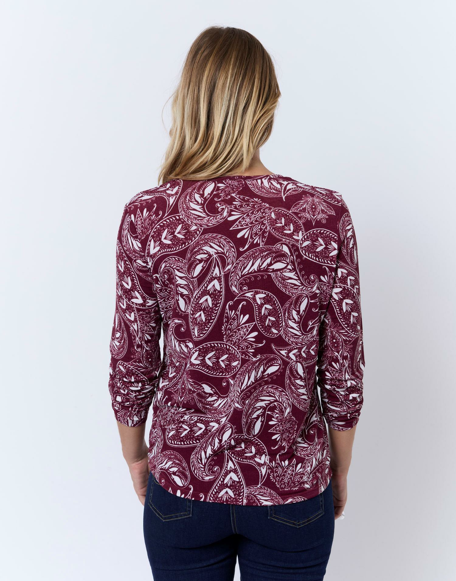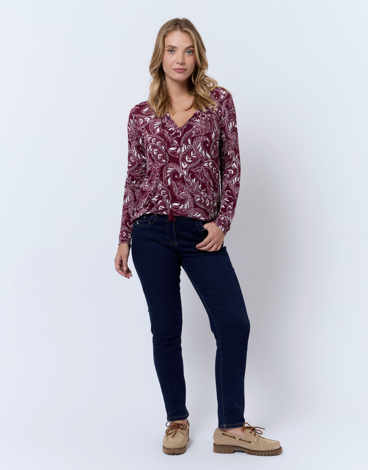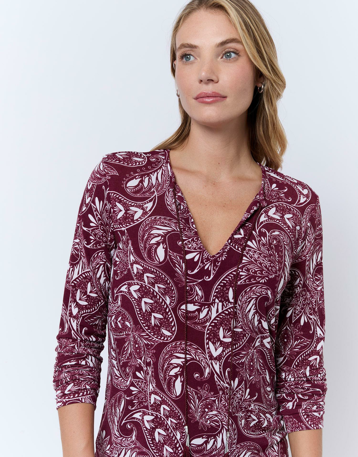 Apportez une touche bohème à votre garde-robe avec ce top manches longues imprimé rouge signé RIU Paris. Léger et fluide, il sublime vos tenues avec élégance et confort.