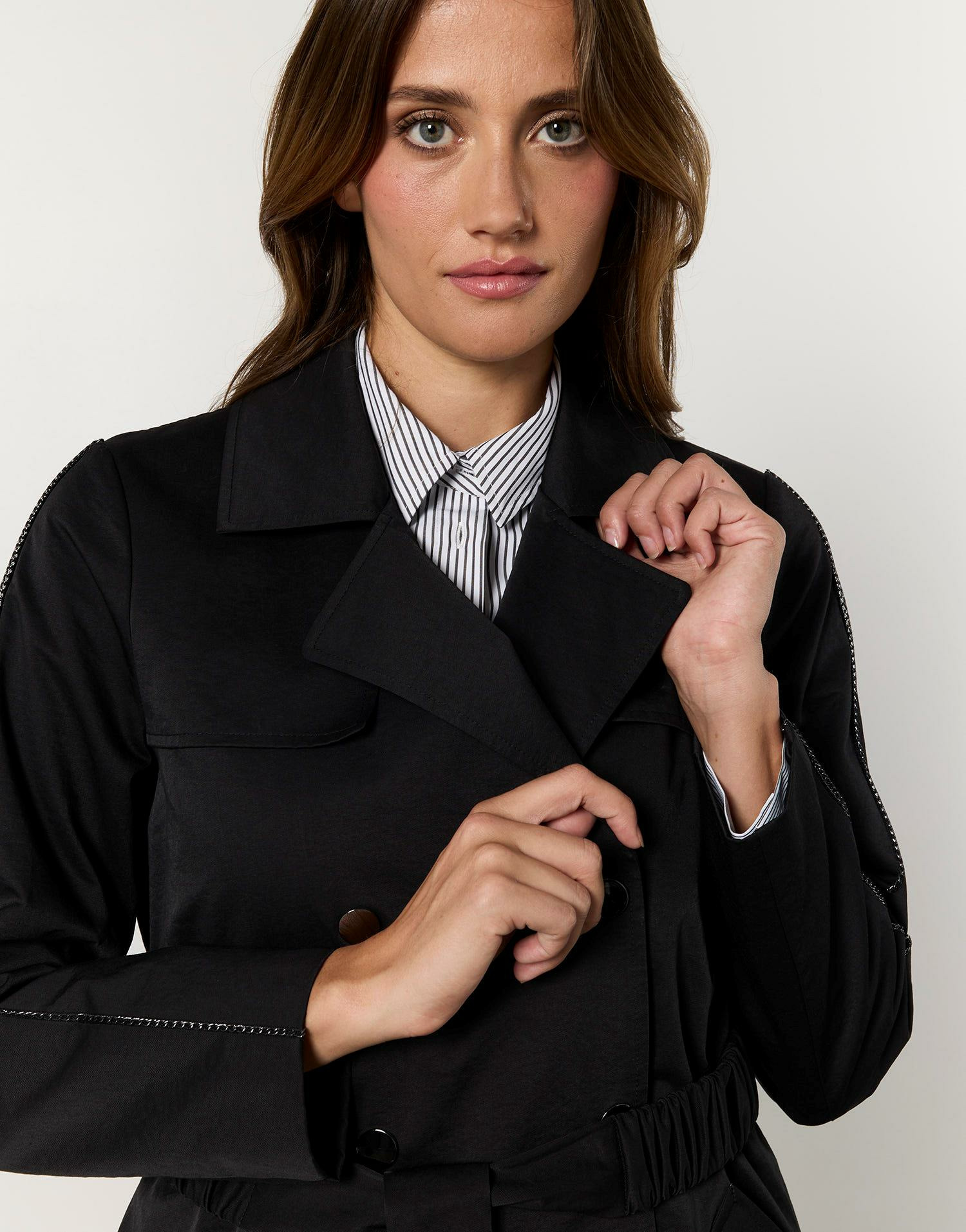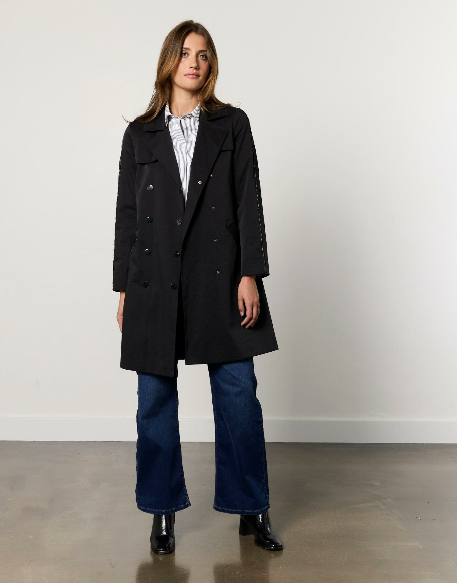Ce trench est-il compatible avec un look formel ? Absolument, il s’adapte parfaitement à un style professionnel ou chic grâce à sa coupe soignée et sa couleur noire classique.
