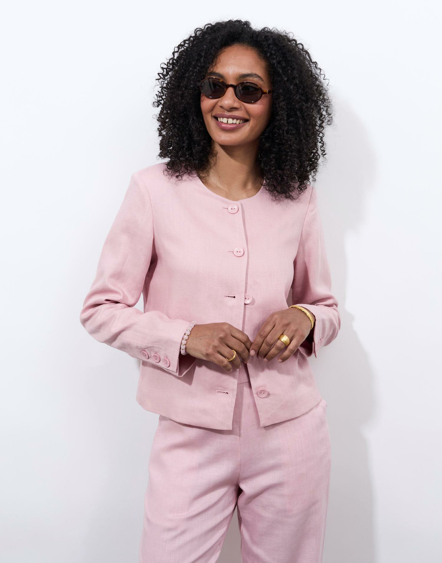 Adoptez l’élégance décontractée avec cette veste chemise unie rose pâle, un essentiel pour sublimer toutes vos tenues. Sa teinte douce et raffinée apporte une touche de fraîcheur à votre dressing.